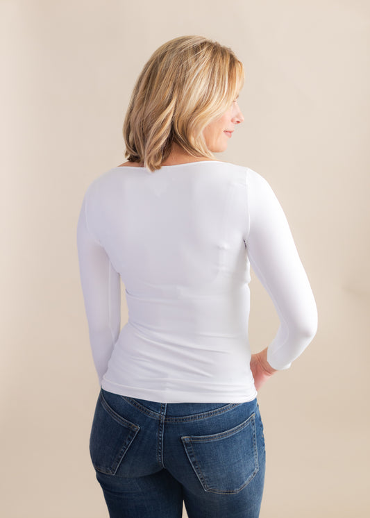 3/4 Sleeve Scoop Neck Top in White | NikiBiki