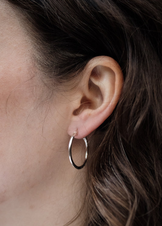 Sterling Silver Flat Hammered Hoop - 25mm