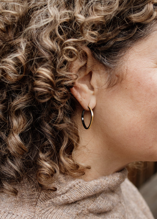 Dark Rhodium & Gold Rectangular Hoop Earrings | Manjusha