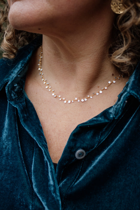 Silver Dot Necklace on Gold Chain | Manjusha