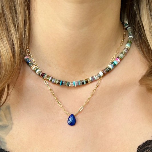 Lapis Pendant on Gold Filled Paperclip Chain | CLP