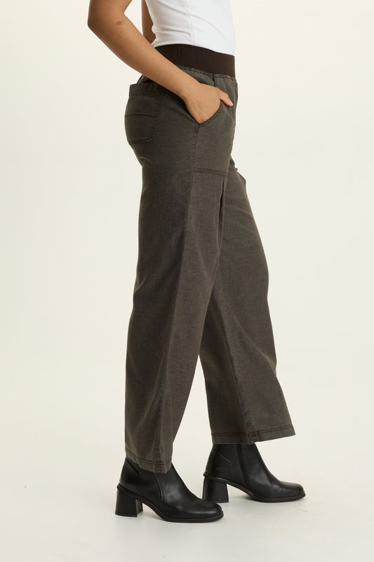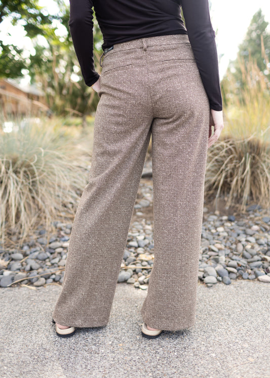 Kelsey Wide Leg Trouser in Brown Herringbone | Liverpool