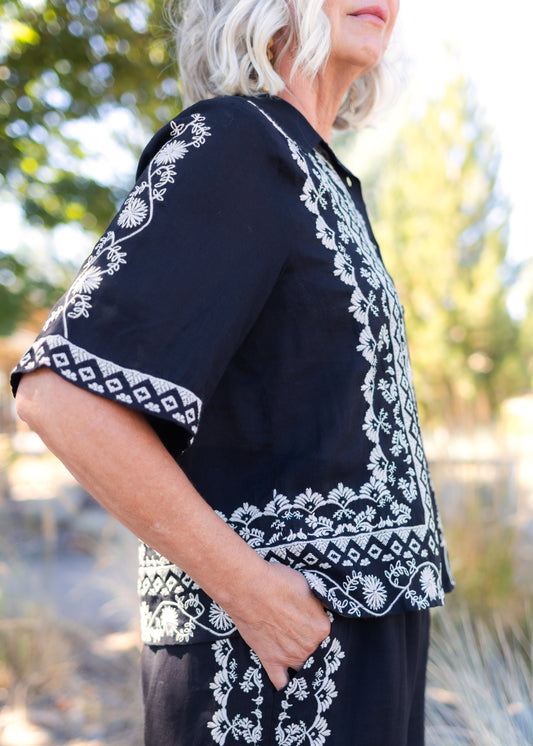 Talia Relaxed Shirt in Black | Johnny Was