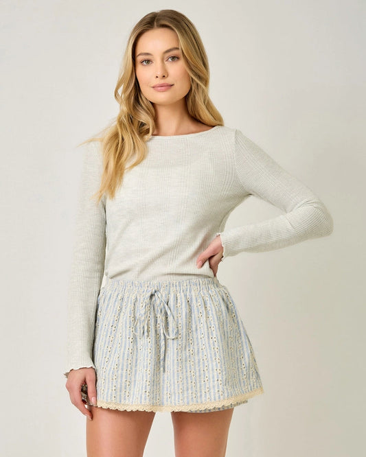 Green Stripe Knit Tee with Rib Trim | Liverpool