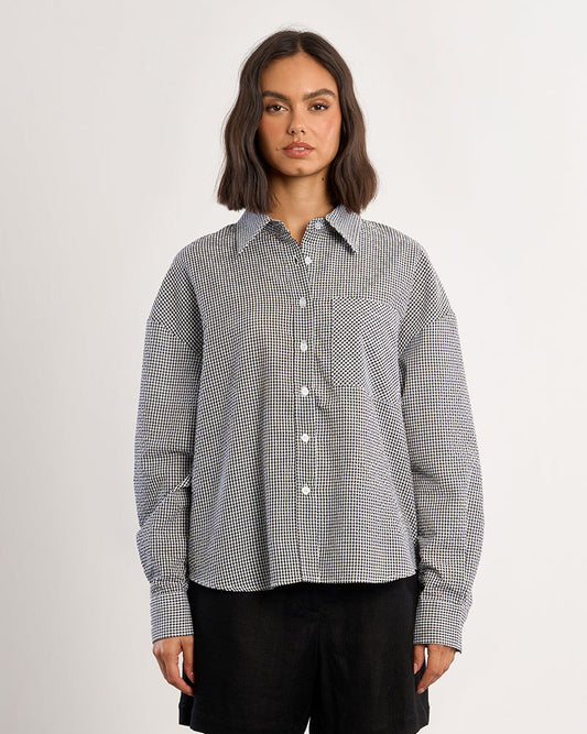 Slim Audrey Collared Shirt in Blue Night | Johnny Was