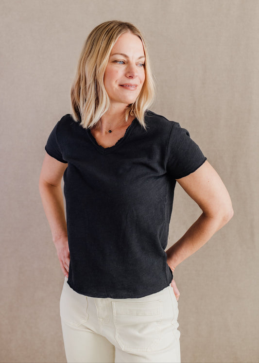 Vanya Relaxed V-Neck Tee in Black | Dear John