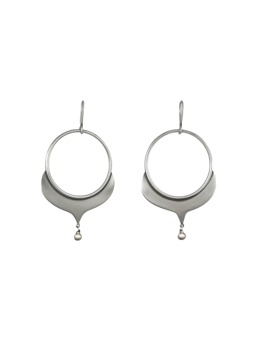 Large hoop drop with softly curved point ending in a bead drop. Dramatic and elegant.