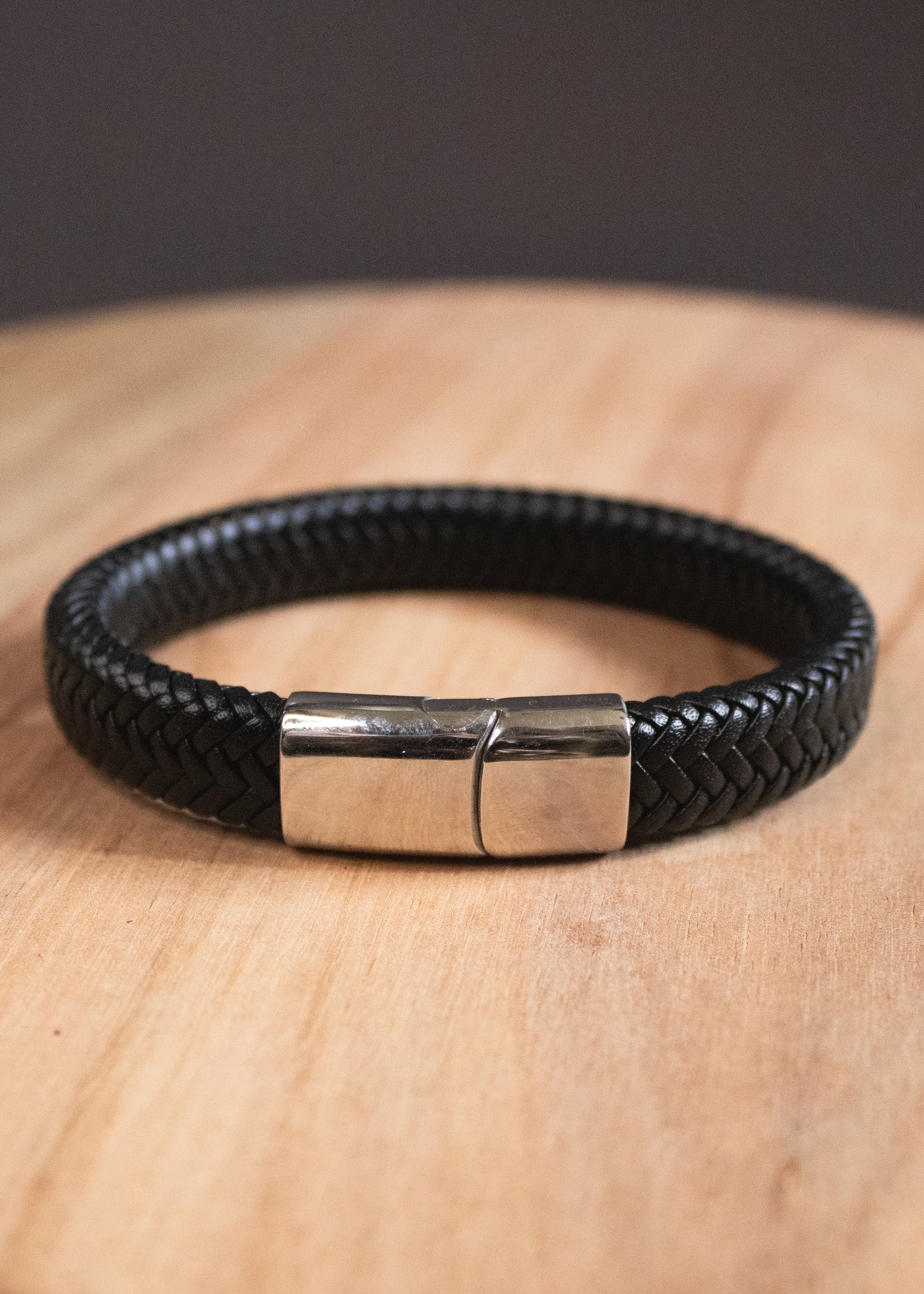 Add a touch of rugged style to your look with this men's black braided bracelet, designed for a cool and casual finish.