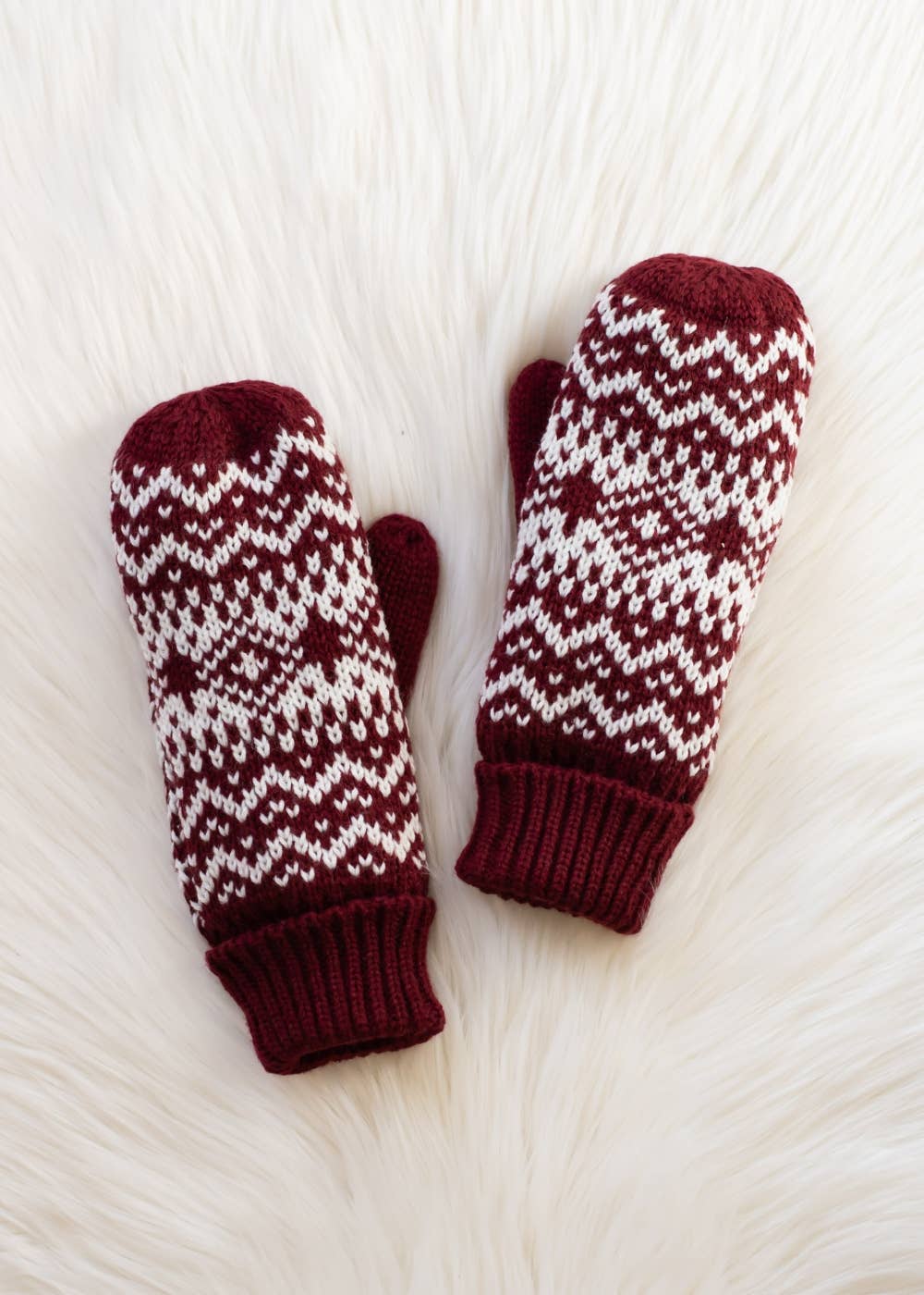 Burgundy & White Patterned Mittens