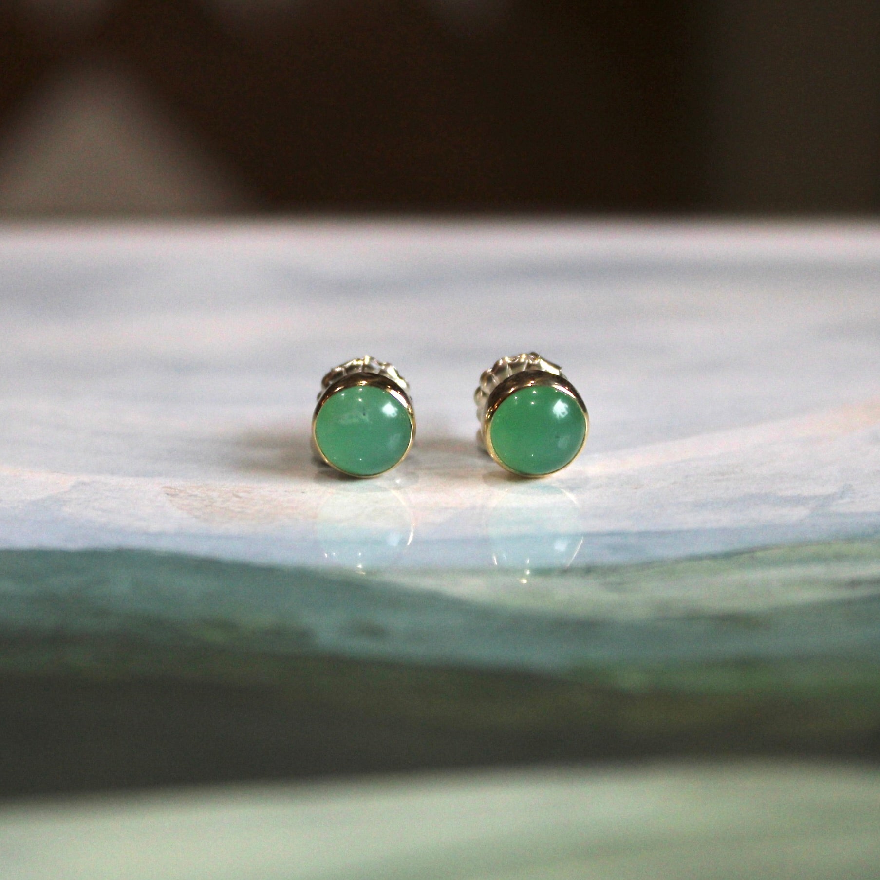 - Chrysoprase post earrings, approximately 7mm stone size