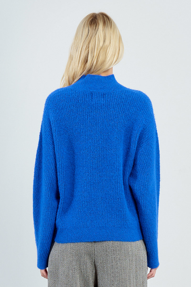 Brighten your day with this playful bright blue turtle neck sweater! Featuring a drop shoulder and thick rib knit, it brings fun texture and cozy vibes together.