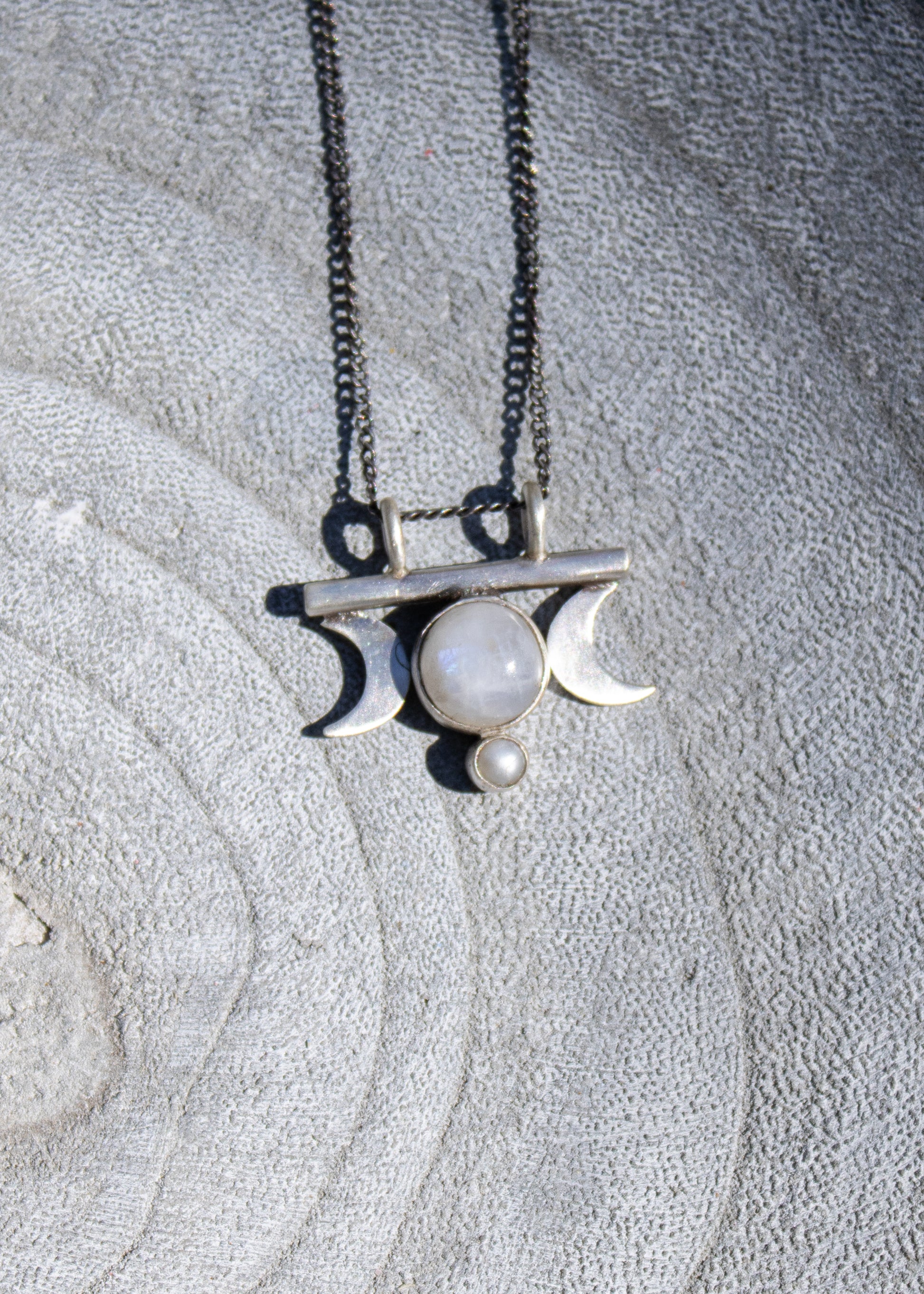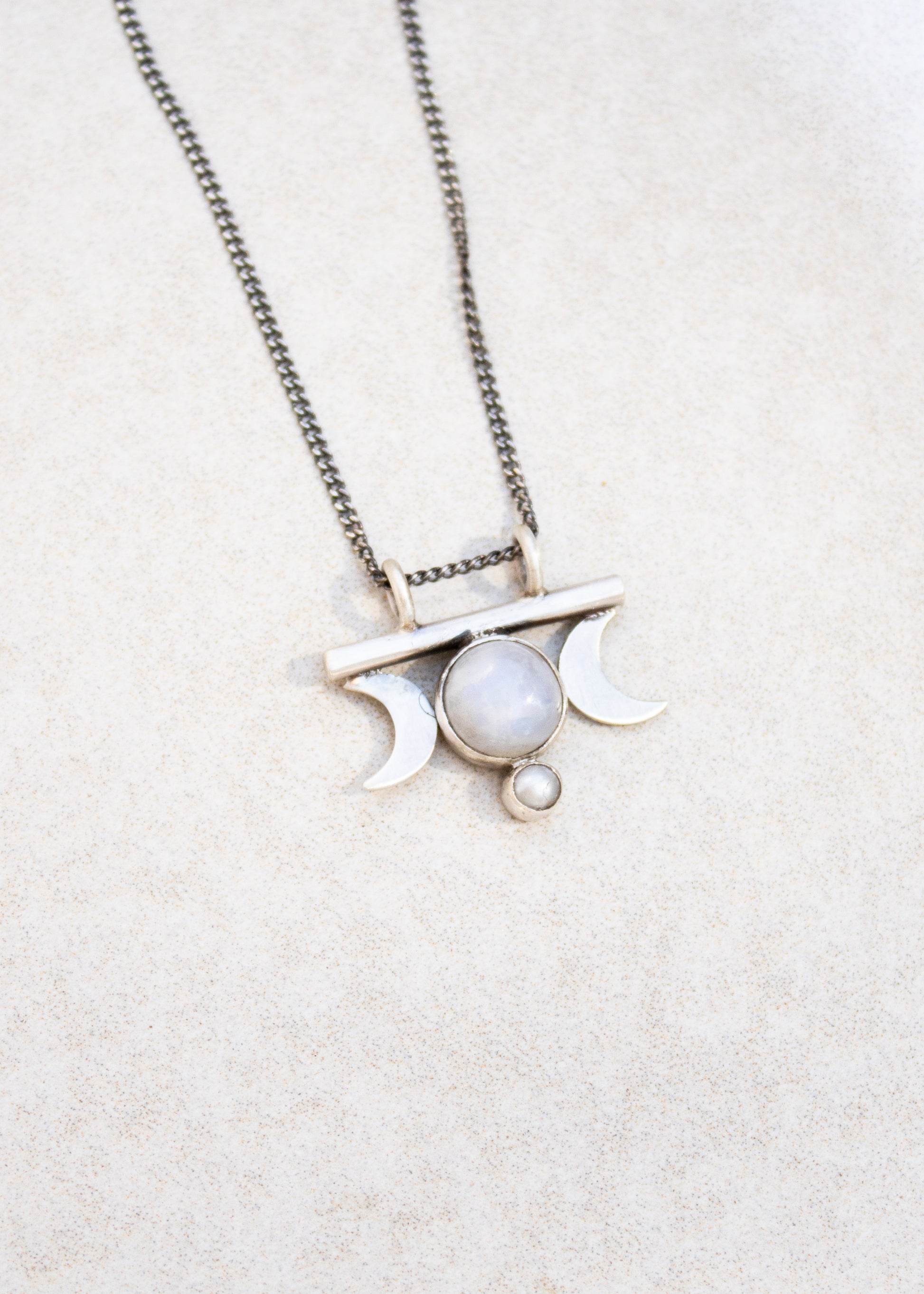 Crescent Moons with Rainbow Moonstone Necklace | Jane Diaz