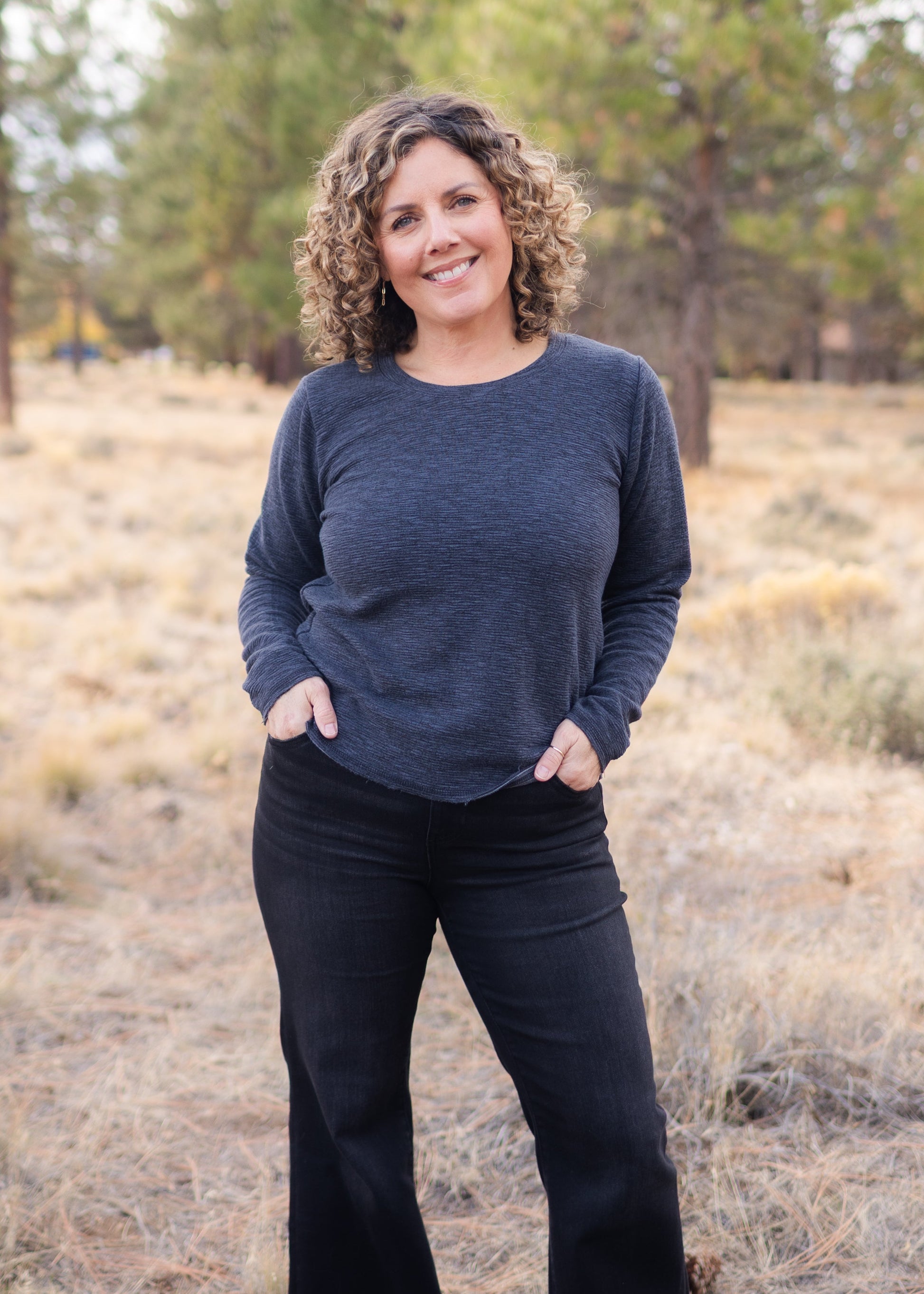 The crimped fabric from CutLoose is one of our faves for the colder months! This sweatshirt-weight material has a great drape and soft hand, giving an everyday style an elevated feel.