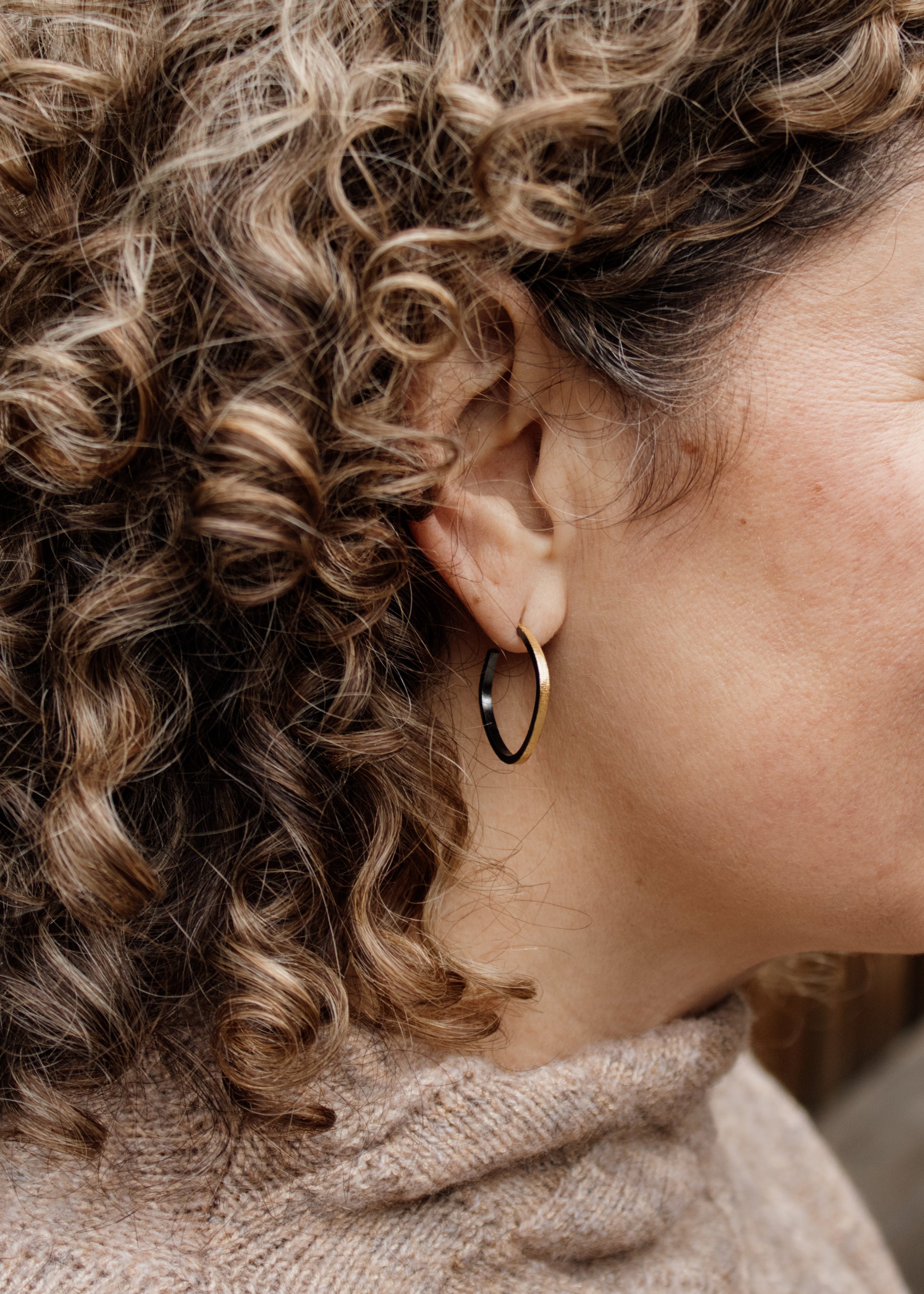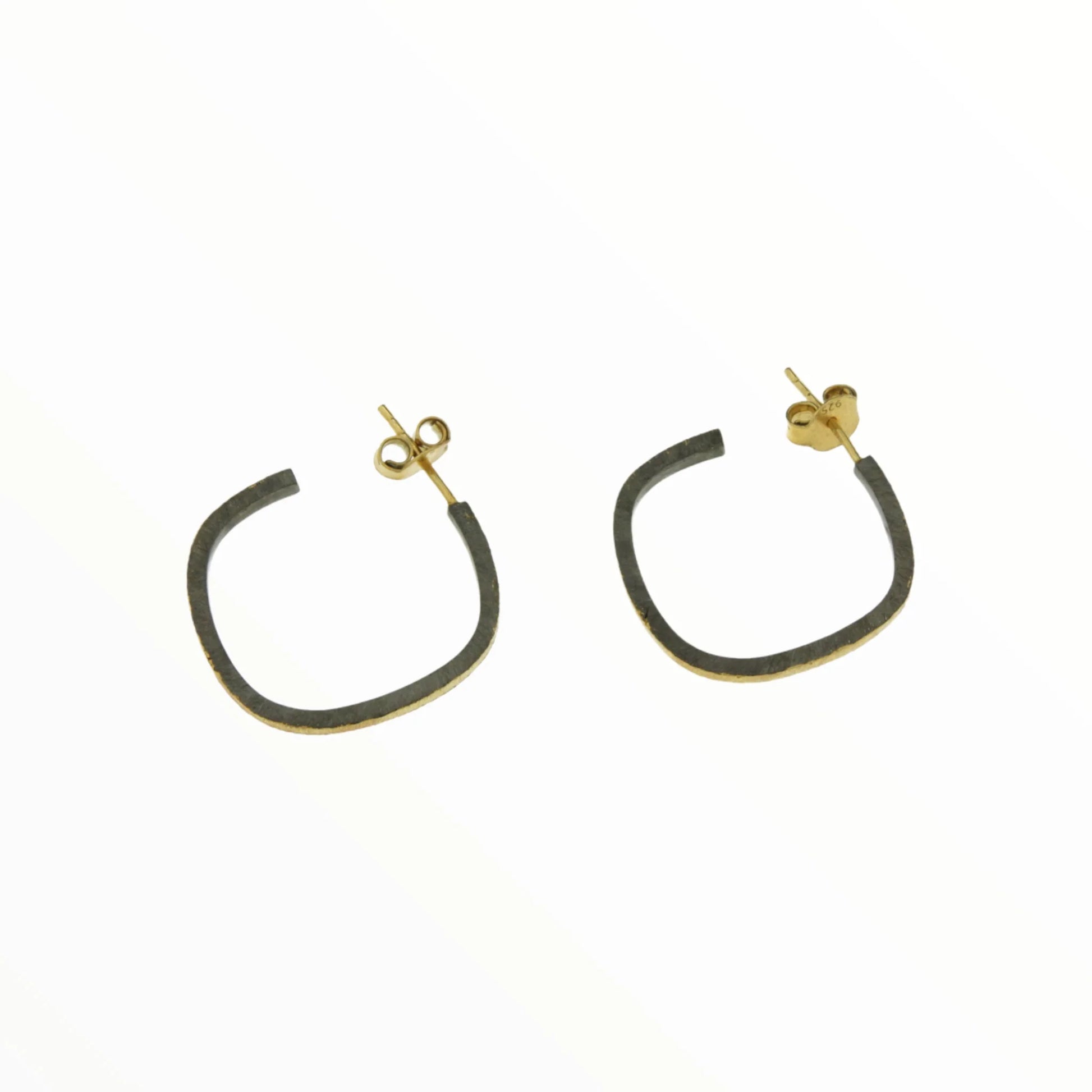 Dark Rhodium & Gold Rectangular Hoop Earrings | Manjusha