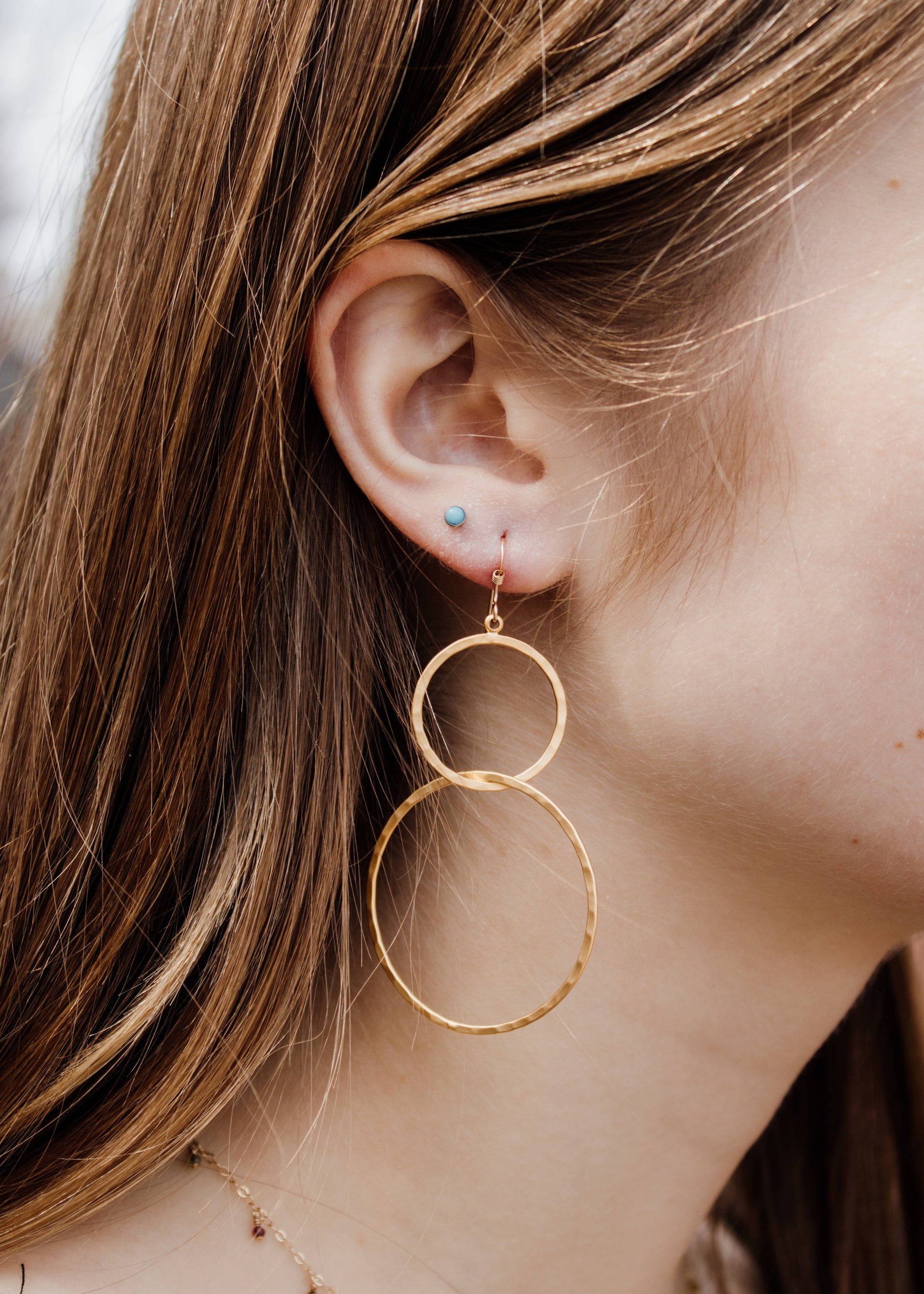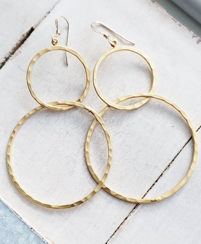 Gold Hammered Circle Earrings