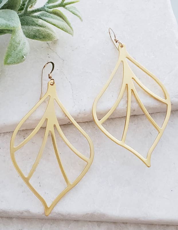 Capture the beauty of nature in every ensemble with this golden outline leaf pair of earrings.