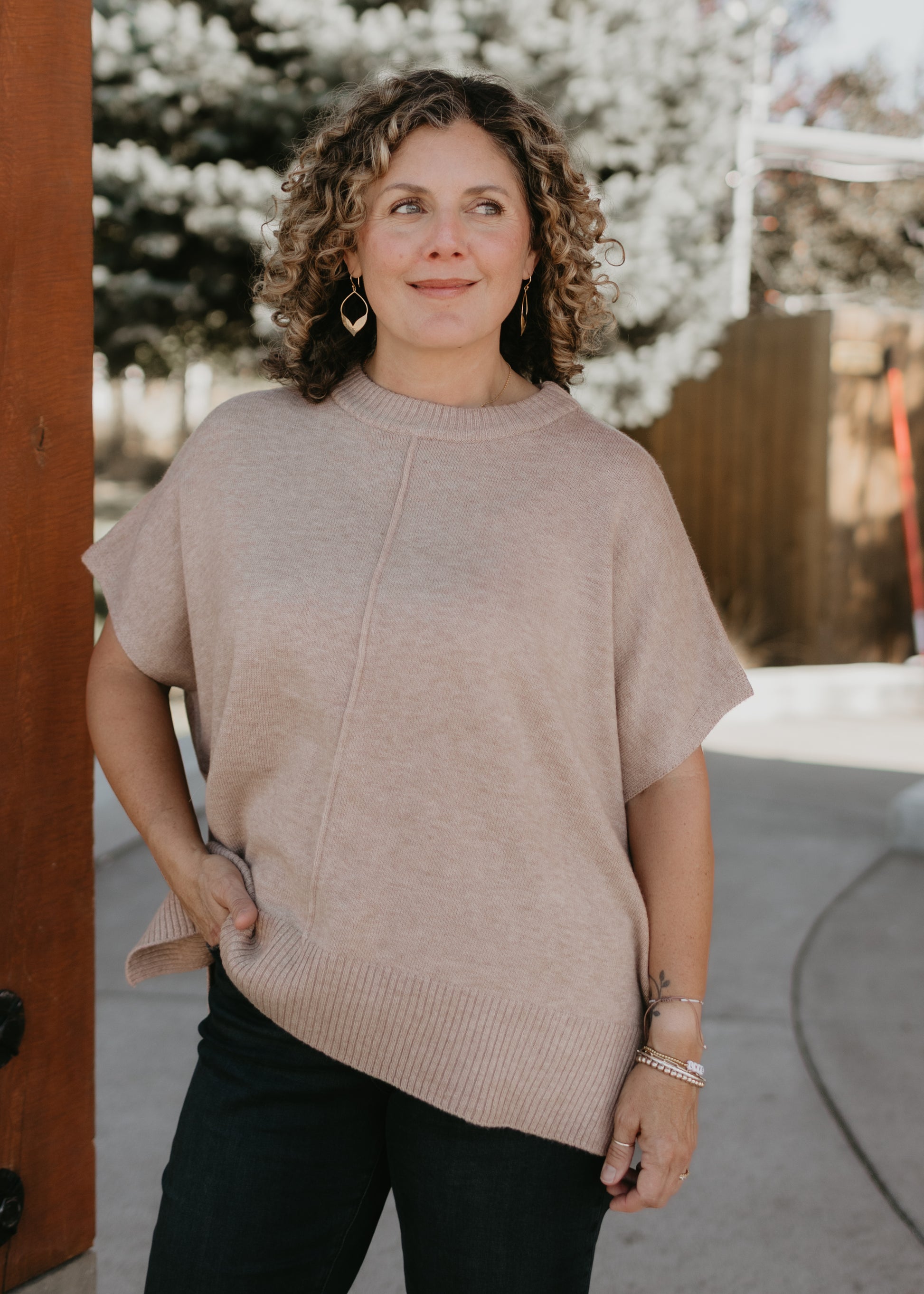 This oversized sweater popover can be dressed up or down! The cozy knit is great for layering all season long.