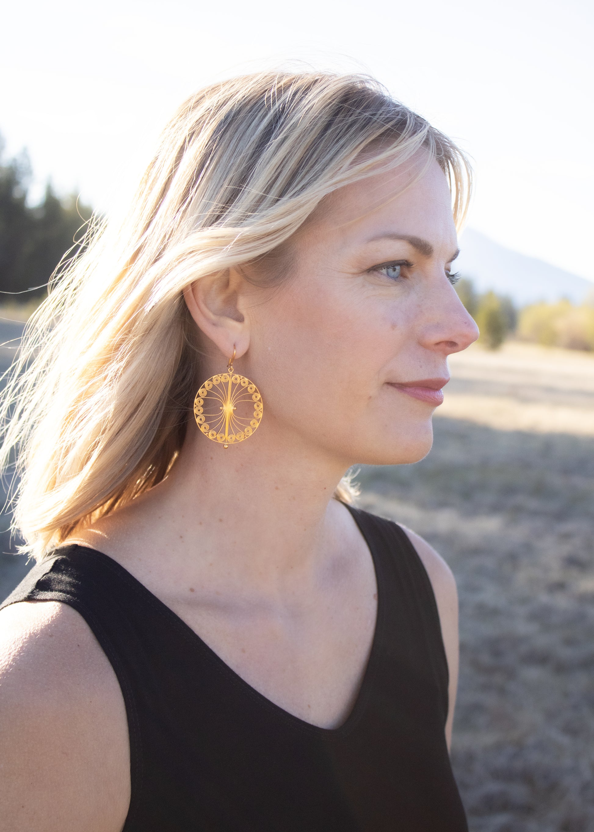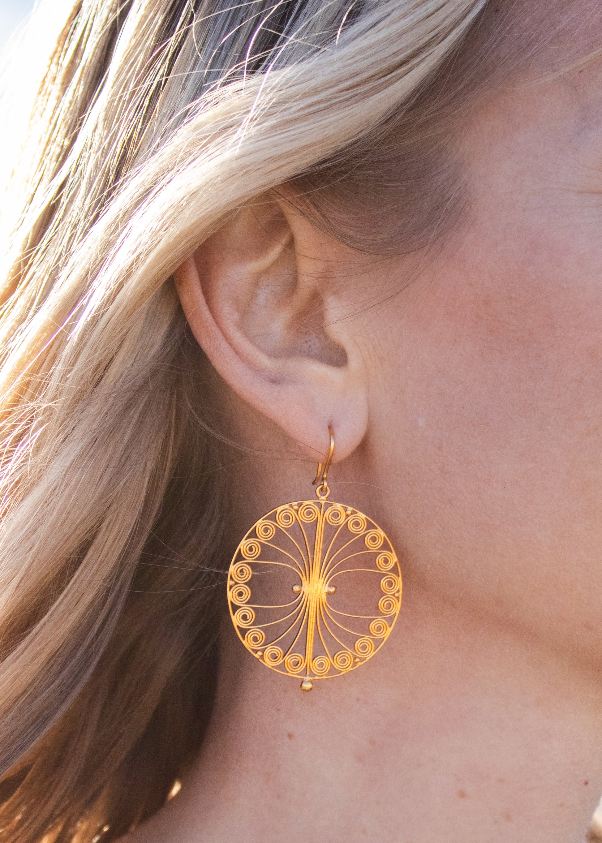 Handmade Filigree Circle Earrings in Gold Plate | Jane Diaz
