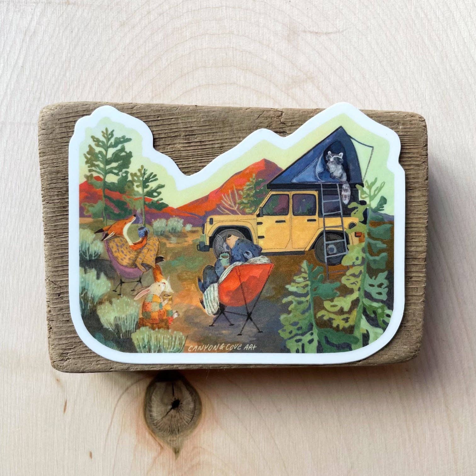 High Desert Sunrise sticker is a reproduction of Sisters, OR artist Megan Nielsen's original watercolor painting. A perfect sticker for a laptop or coffee tumbler for any outdoorsy, adventuring, nature-loving individual.