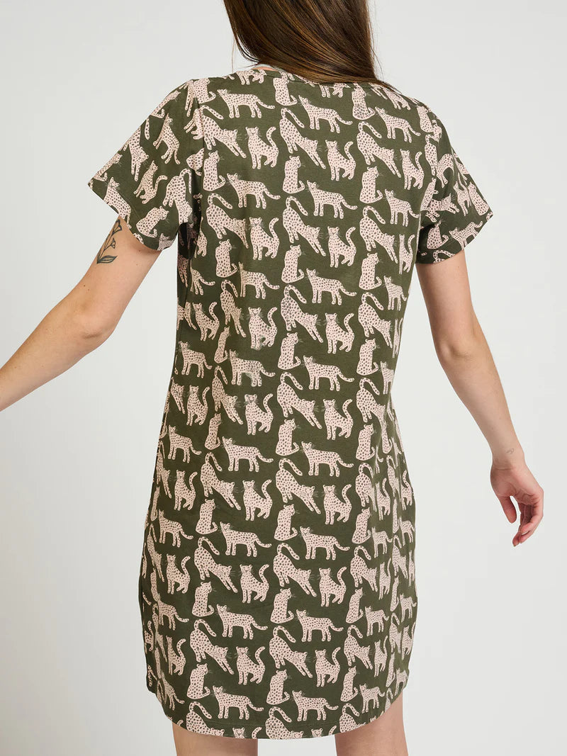 Hudson Shift Dress in Leopard Green | Mata Traders