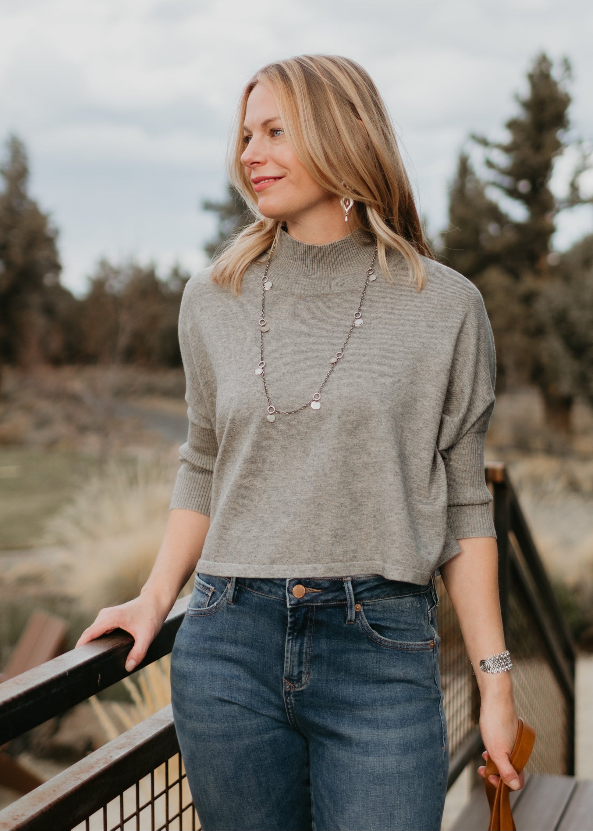 Handmade sterling silver chain with wafer thin satin finish discs hanging from interspersed rings...a Bohemian classic.