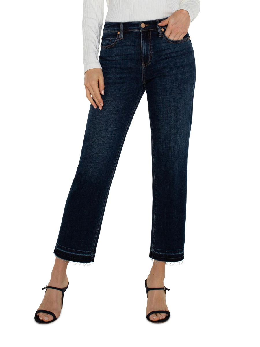 The Non-Skinny is the ideal fit between a skinny and a slim in a slightly higher rise. The ankle length is cute for all shoe types, and we love the fun raw hem here!