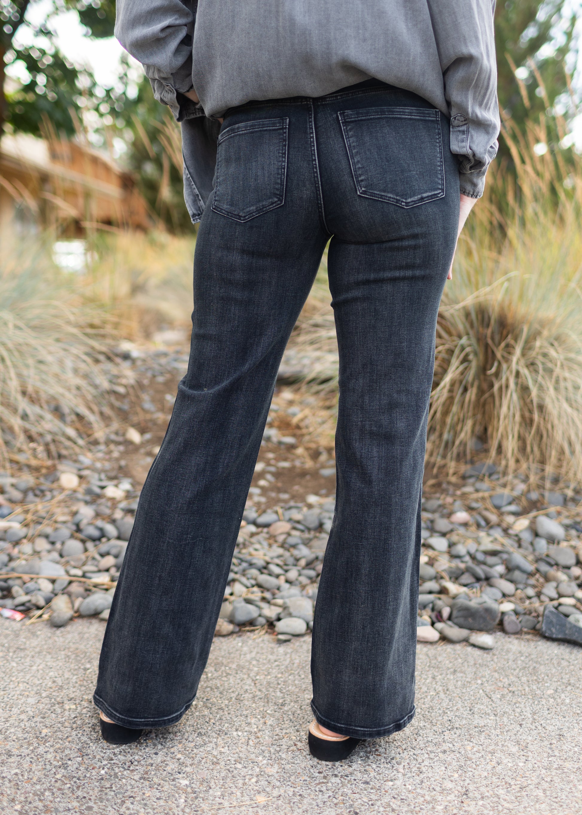 Slim through the hips and thighs, these jeans gently release at the knee to create their iconic bootcut silhouette. The wide leg opening drapes effortlessly over boots, heels, or sneakers, offering a flattering finish to any look. A versatile essential made to move with you — from city streets to nights out.