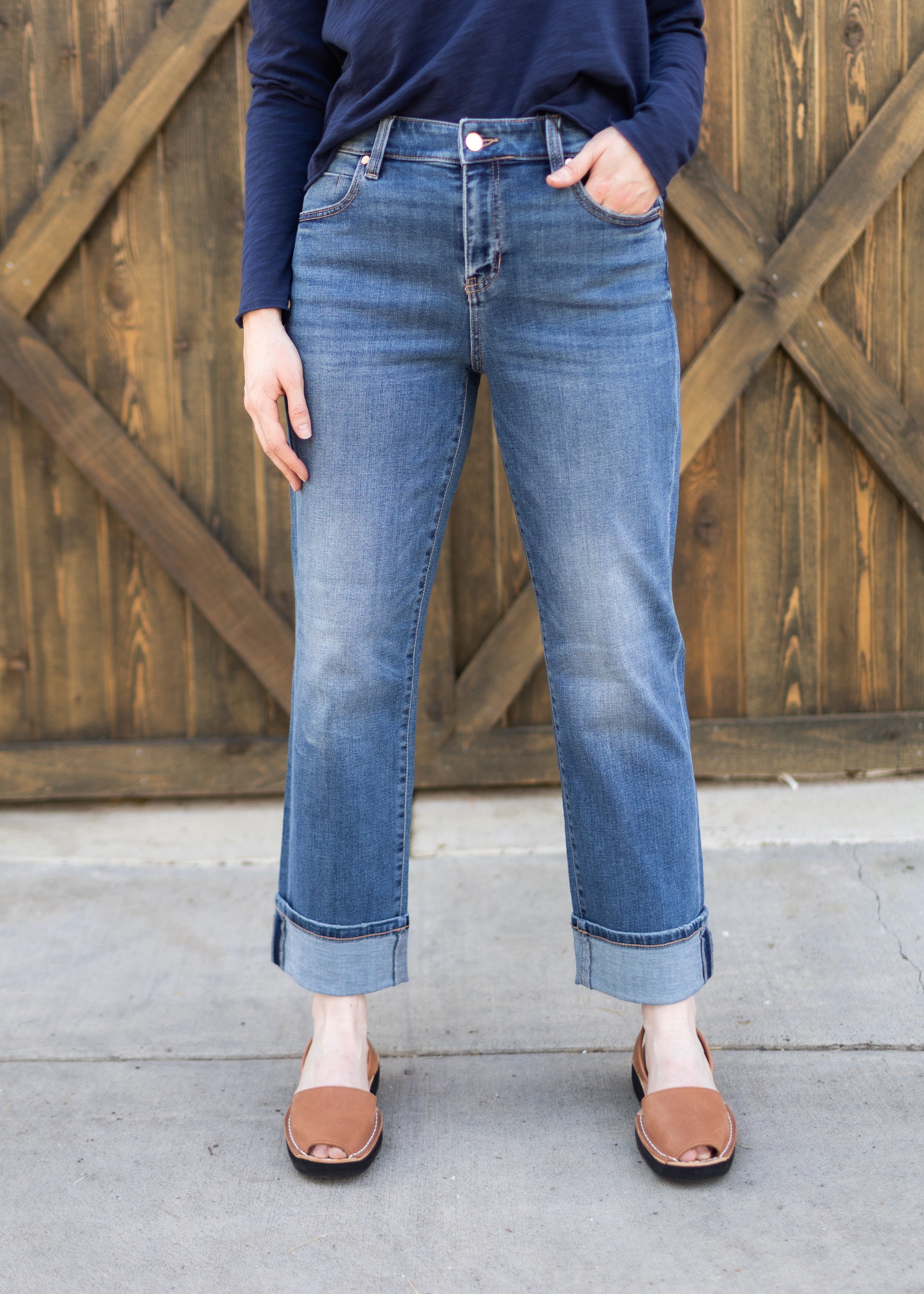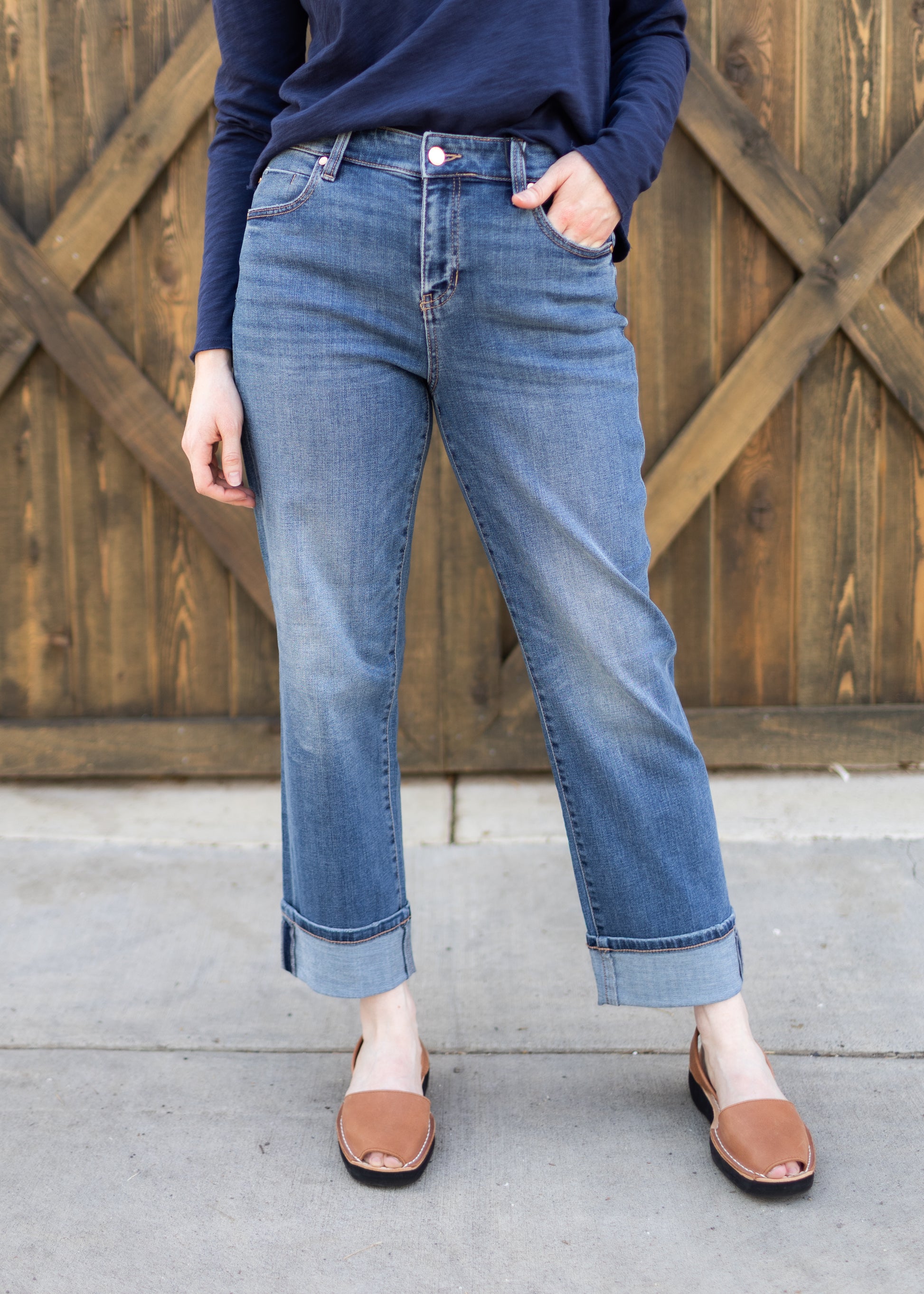 The Marley Girlfriend Jean from Liverpool is a great style if you want a straight fit that's not too wide! Wear cuffed or un-cuffed for a versatile look.