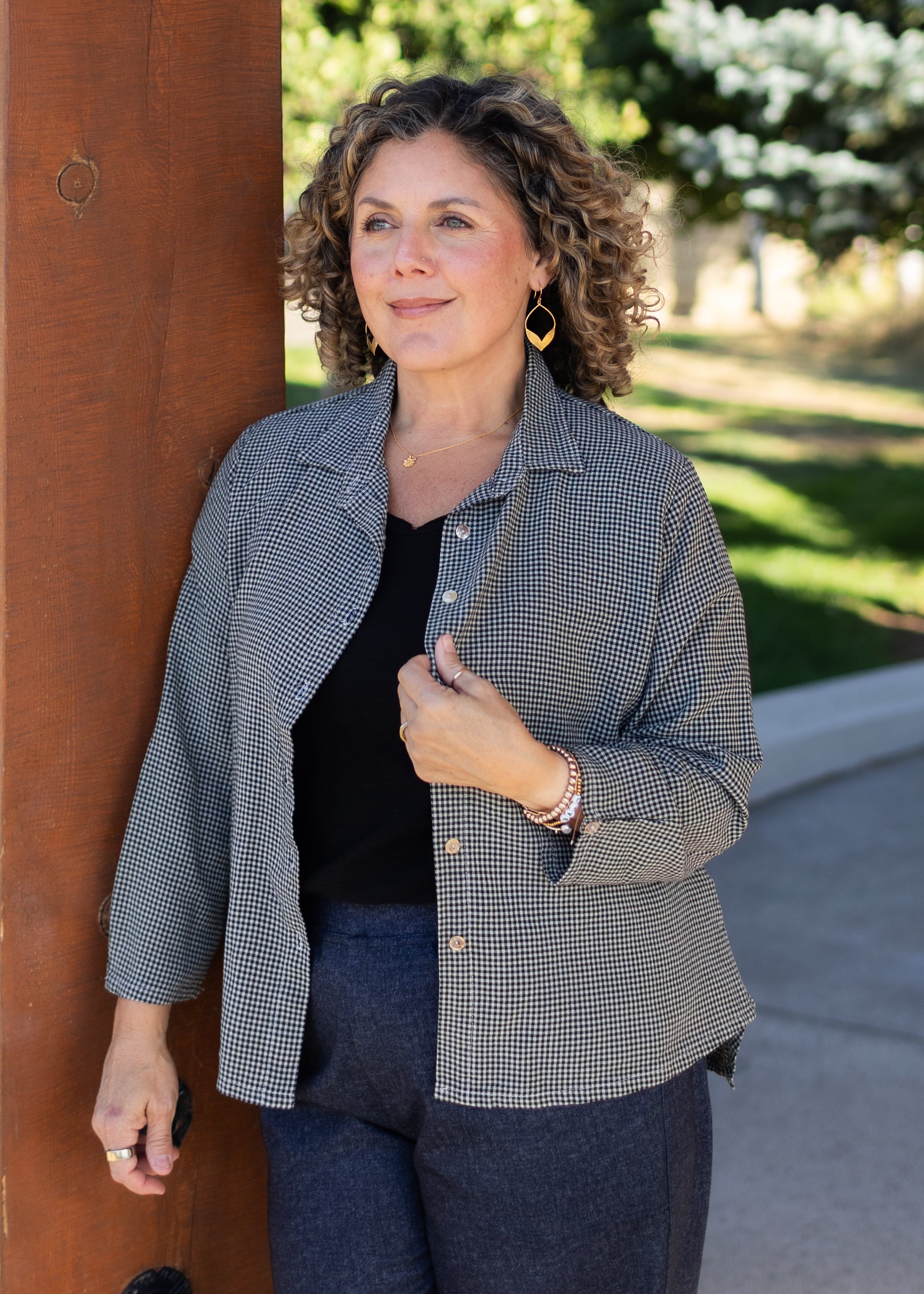 This shirt features a playful check and hi-low hem that's sure to leave you feeling comfortable and effortlessly put together.