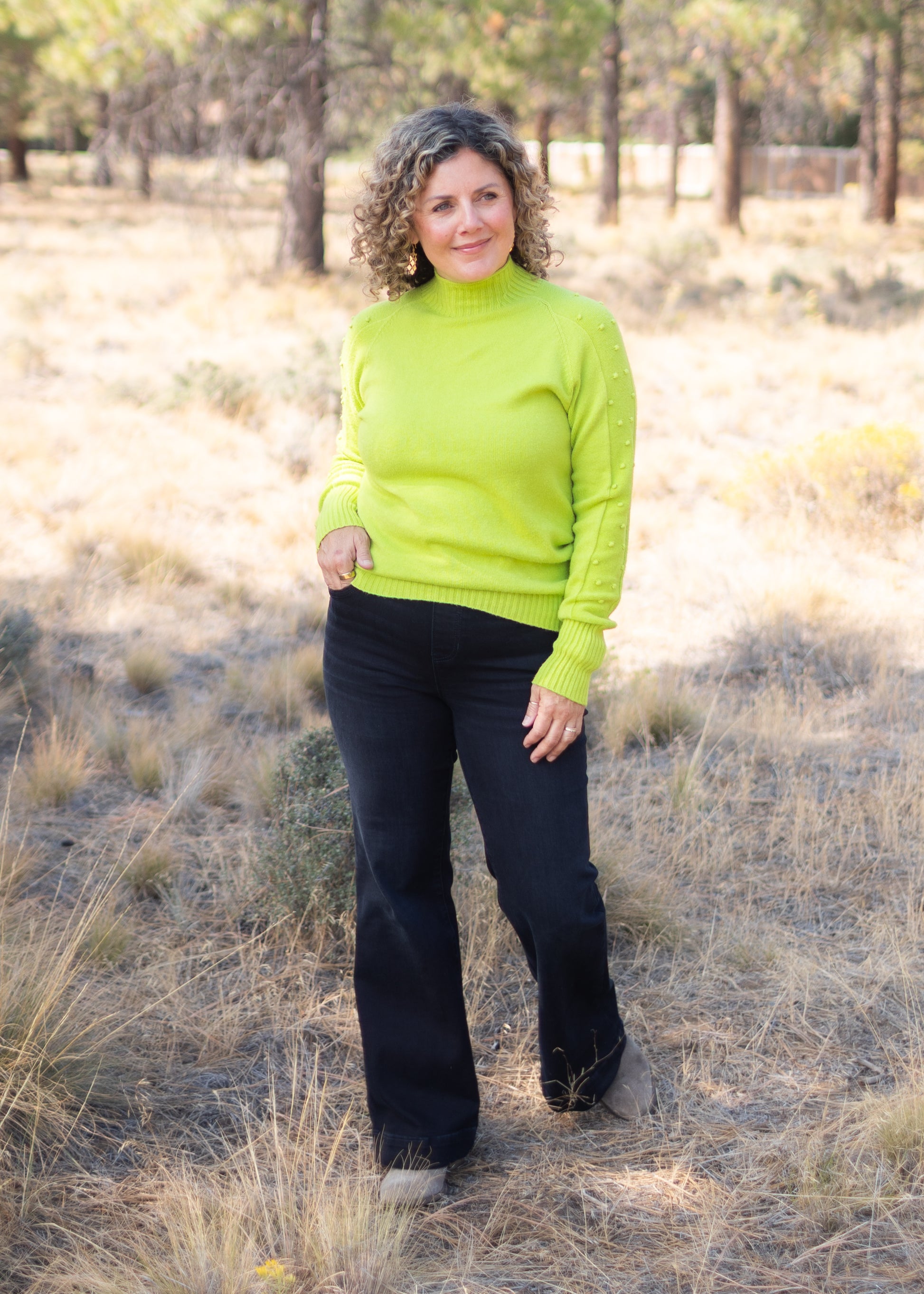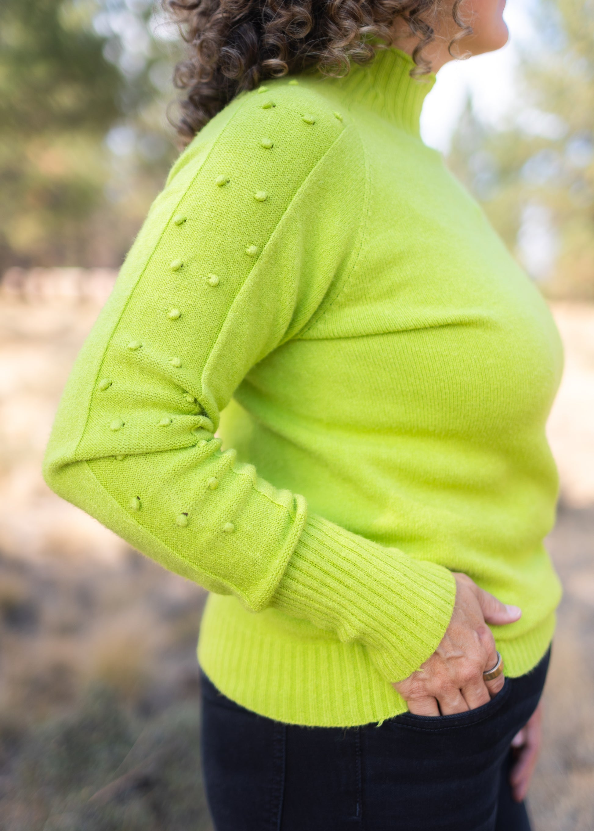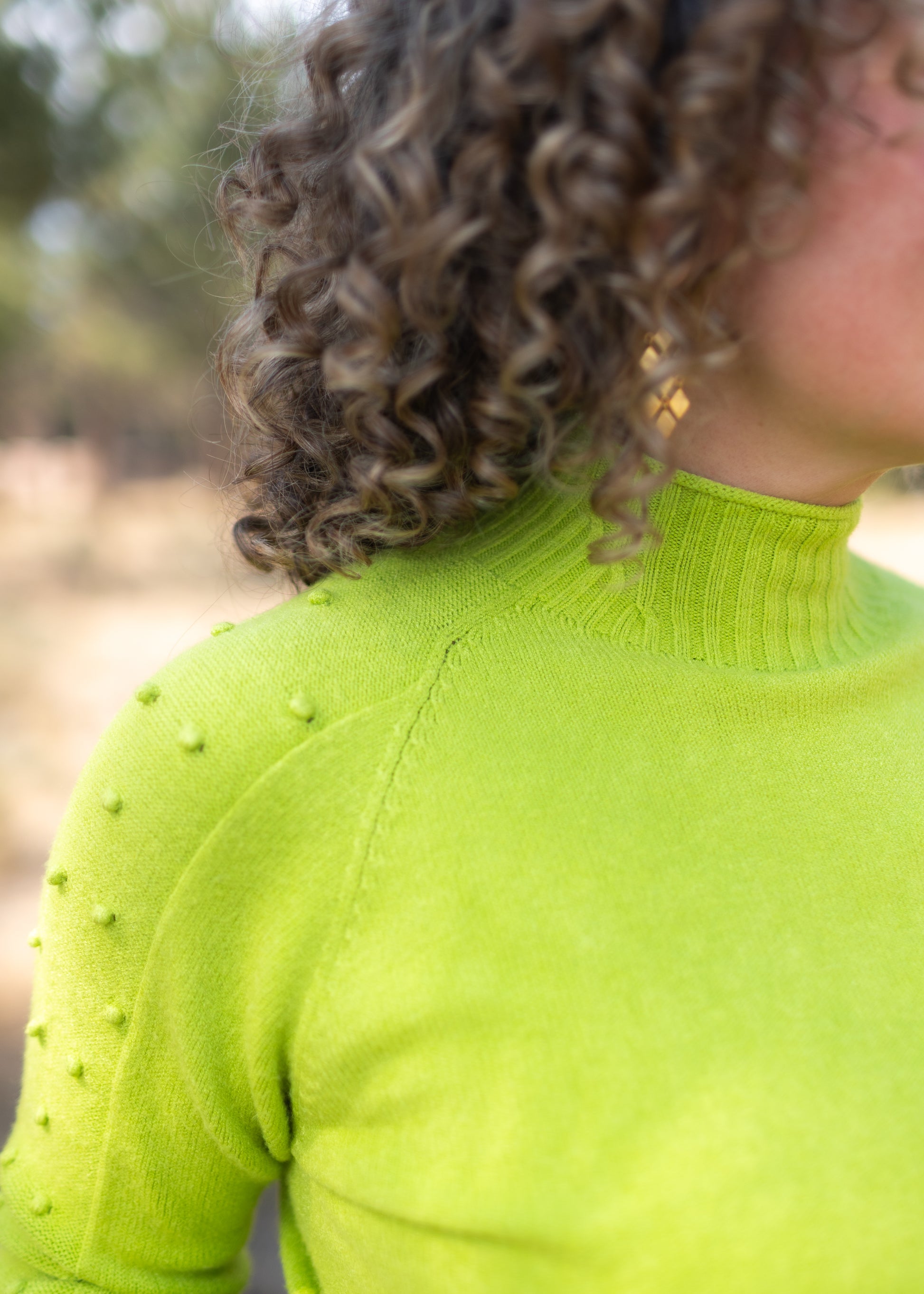 Make a statement in this fun bright green sweater! The soft knit and long sleeves will keep you warm, while the vibrant color and bobble detail will bring a little joy to your day!