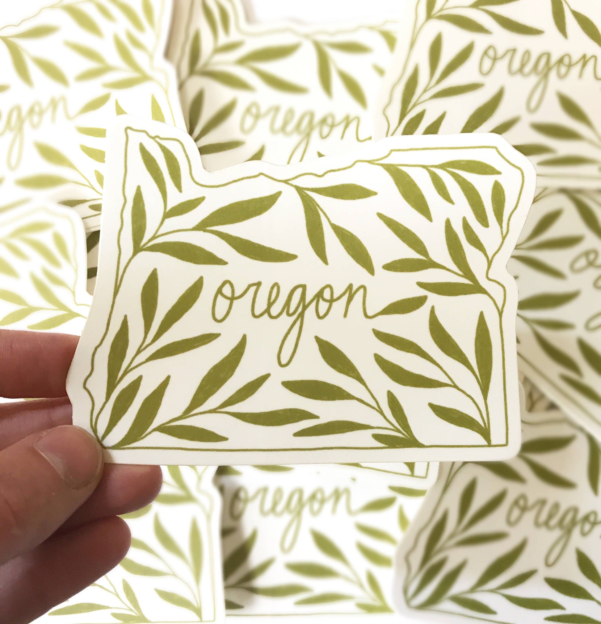 This hand illustrated, waterproof & vinyl sticker is perfect for any Oregon & PNW lover. It's meant to be used on your water bottle, laptop, journal, car, etc. Art by Maija Rebecca.