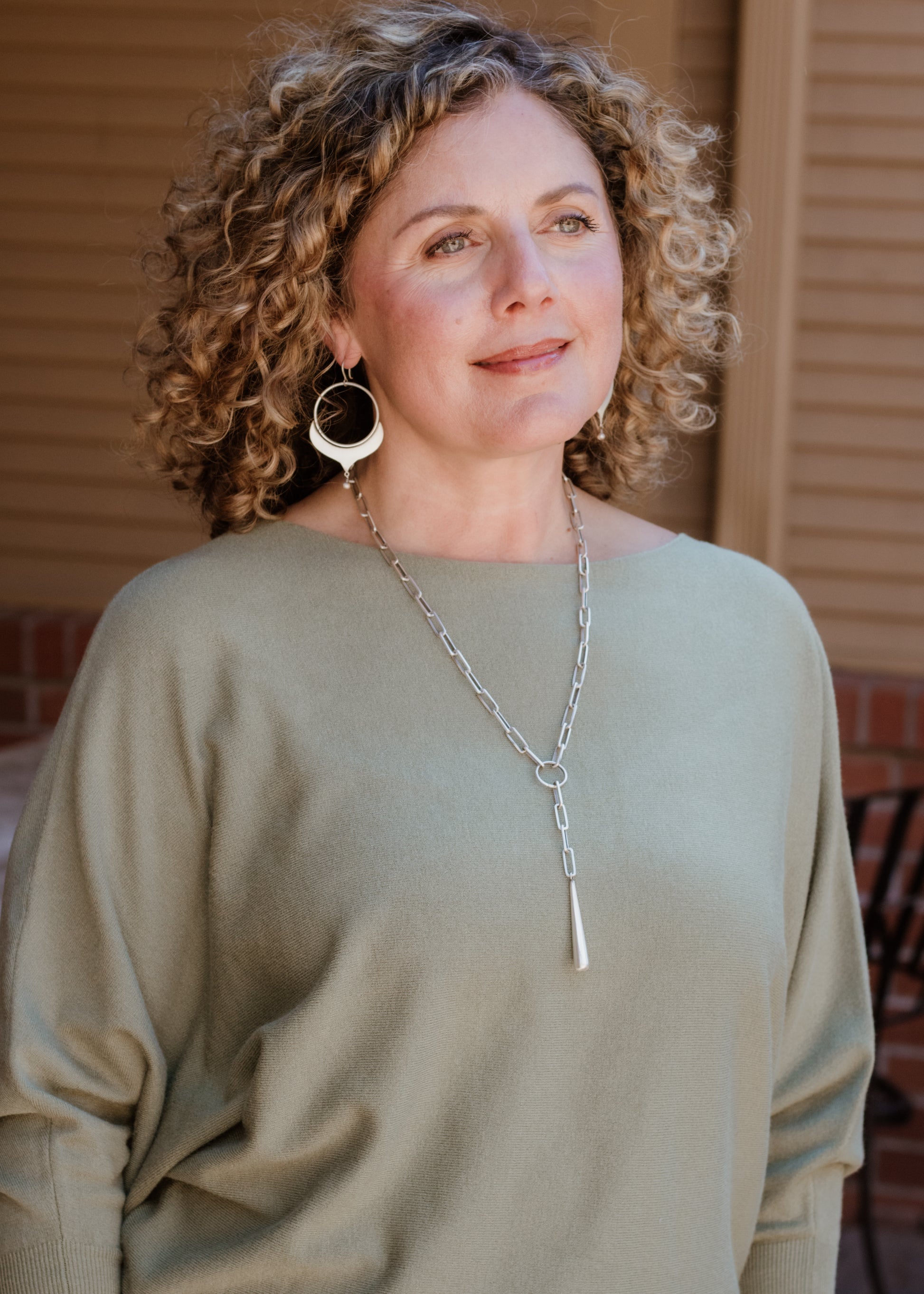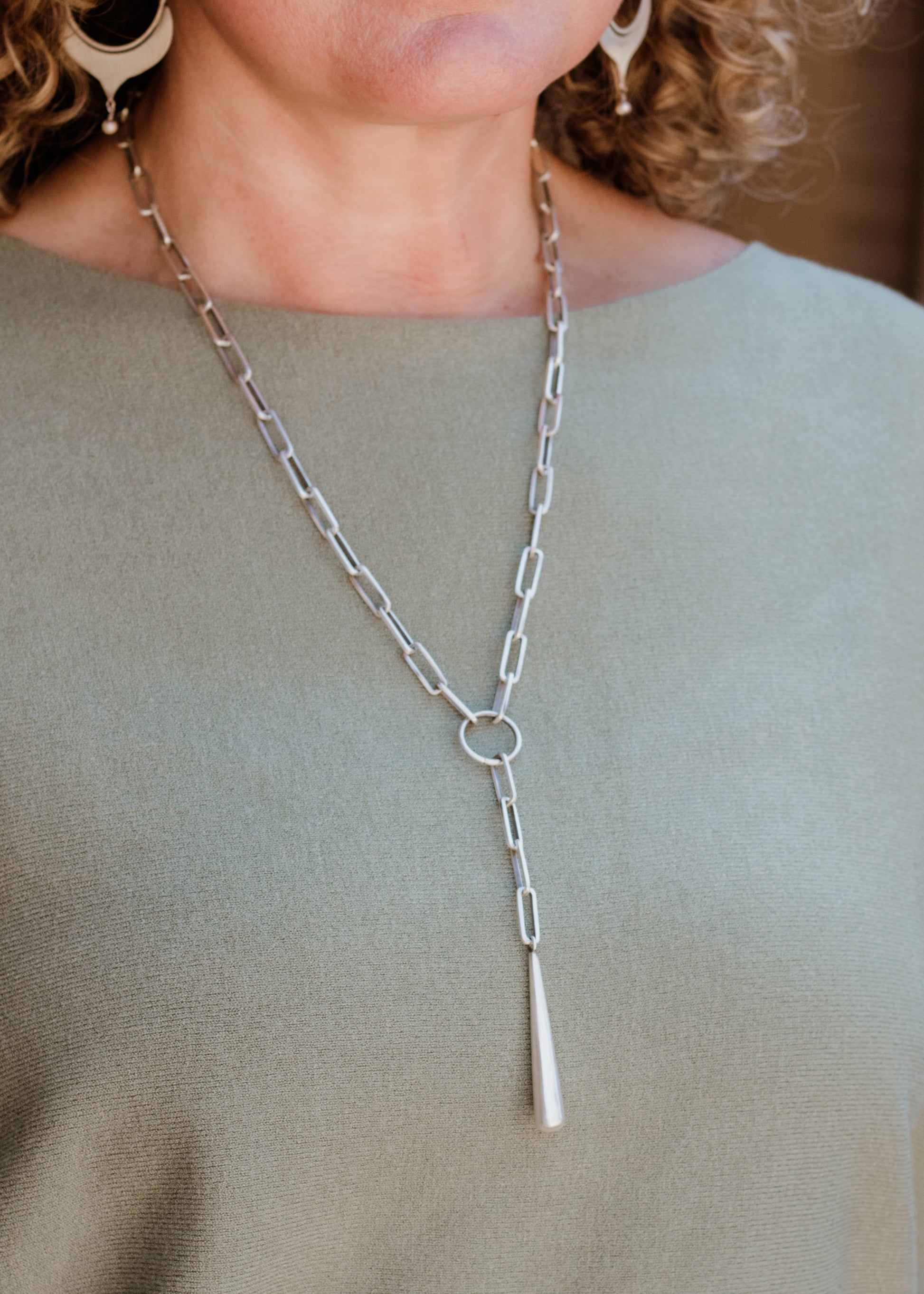 Adjustable artisan-made chain with large tear drop. Elegant and a great conversation piece.