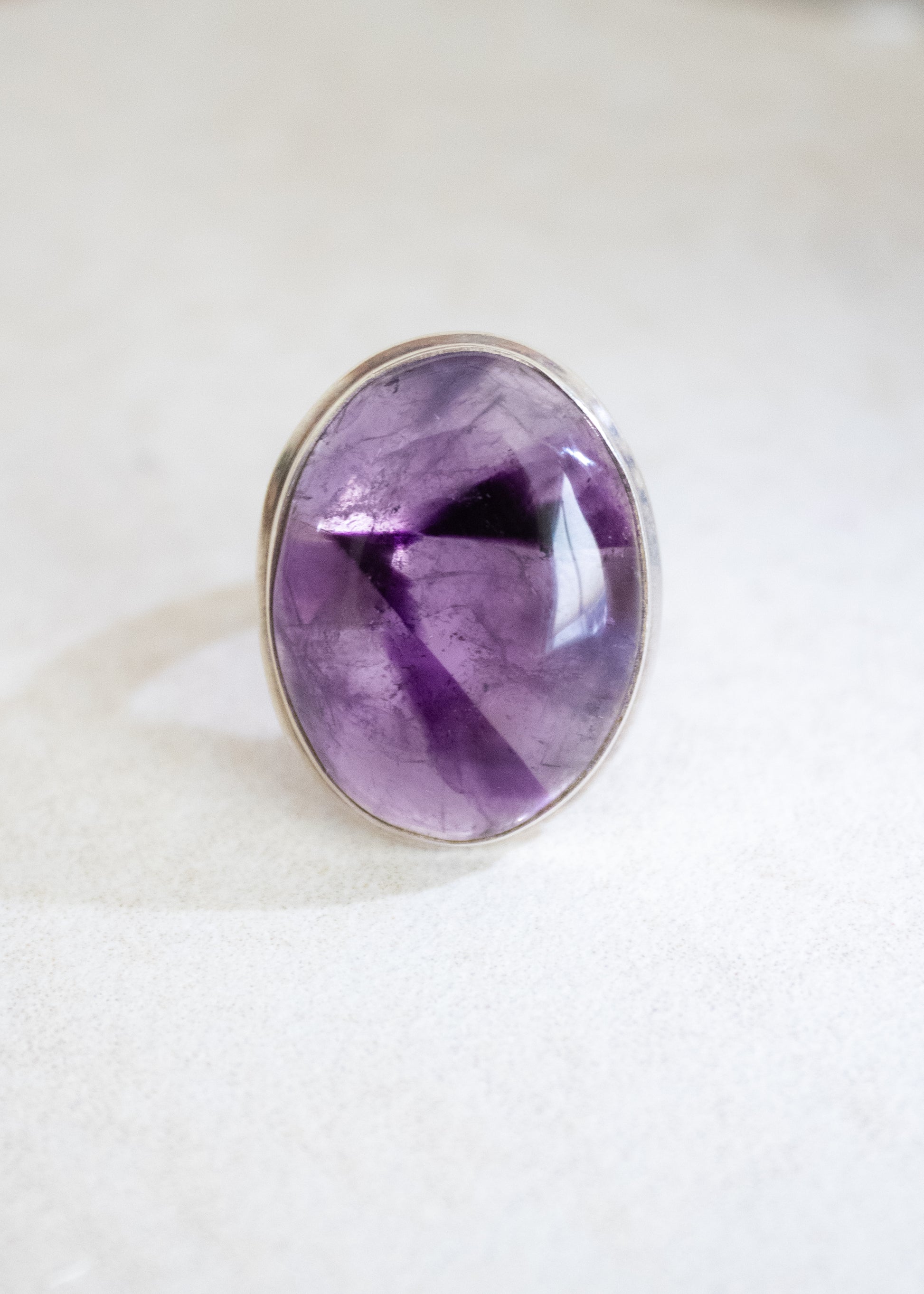 - Oval amethyst ring, 25mm x 20mm