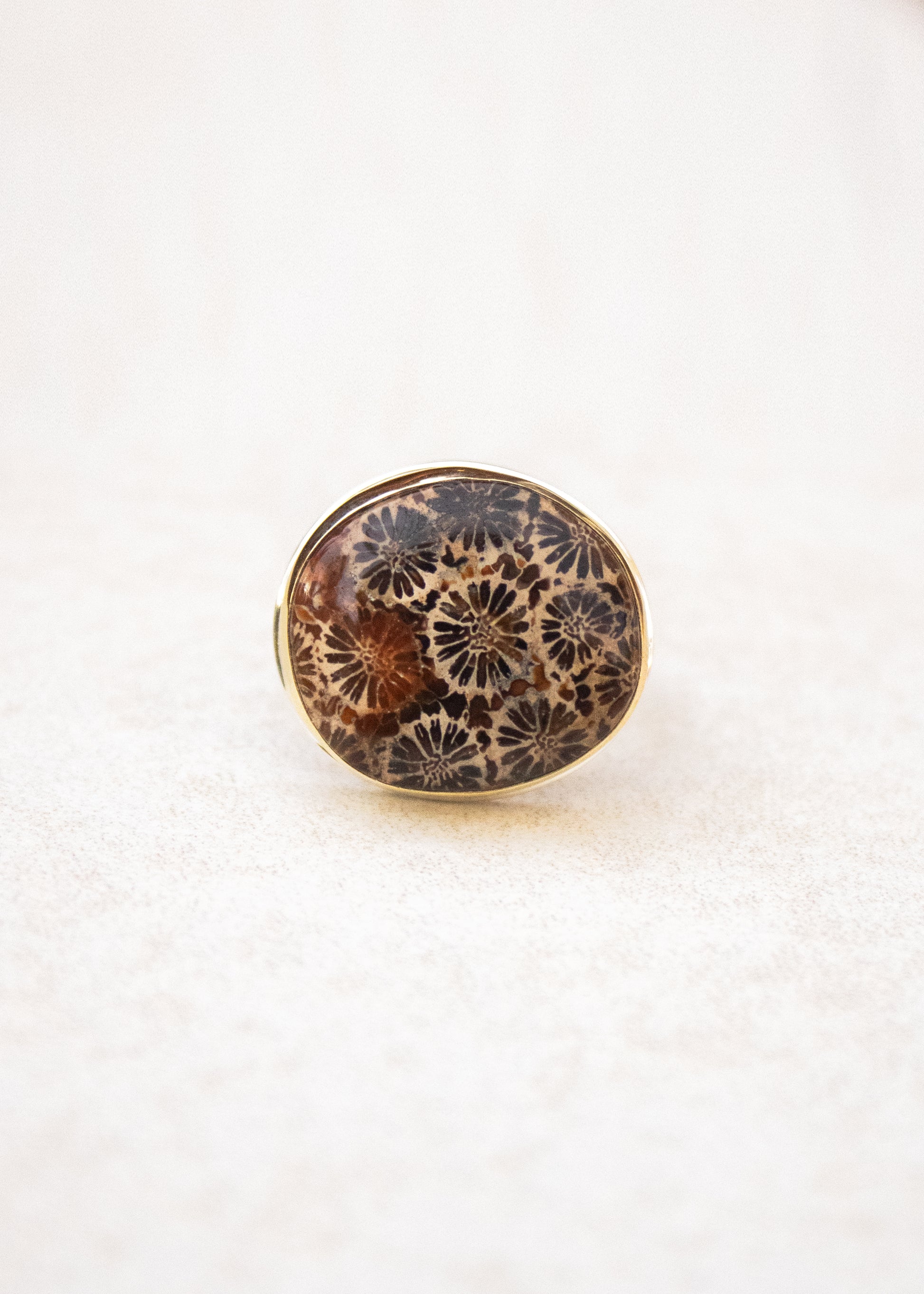 - Petrified Sponge Coral Ring, 17x19mm stone size