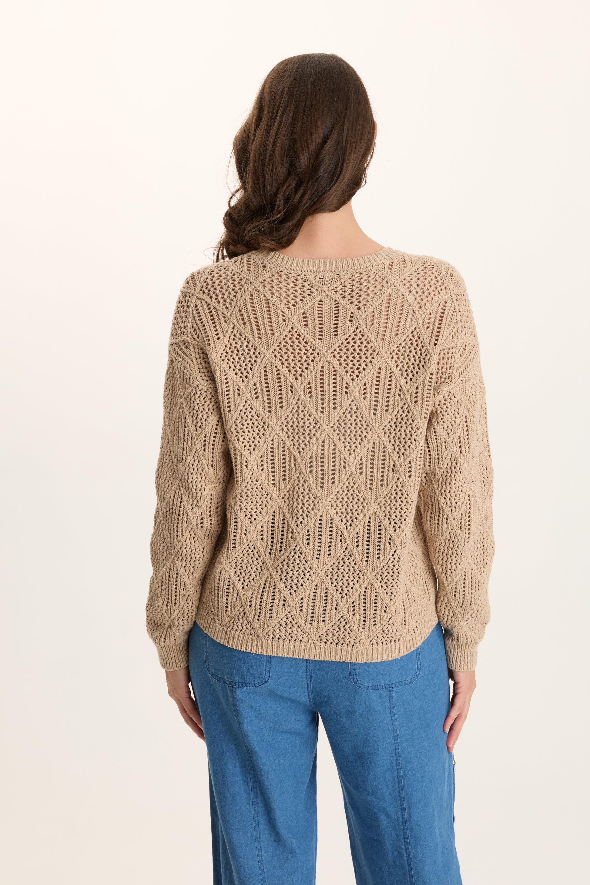 Diamond-knit Cali Cotton graces this long-sleeve, relaxed-fit style. She's like a sweater with the endless possibilities of a lightweight layering piece.