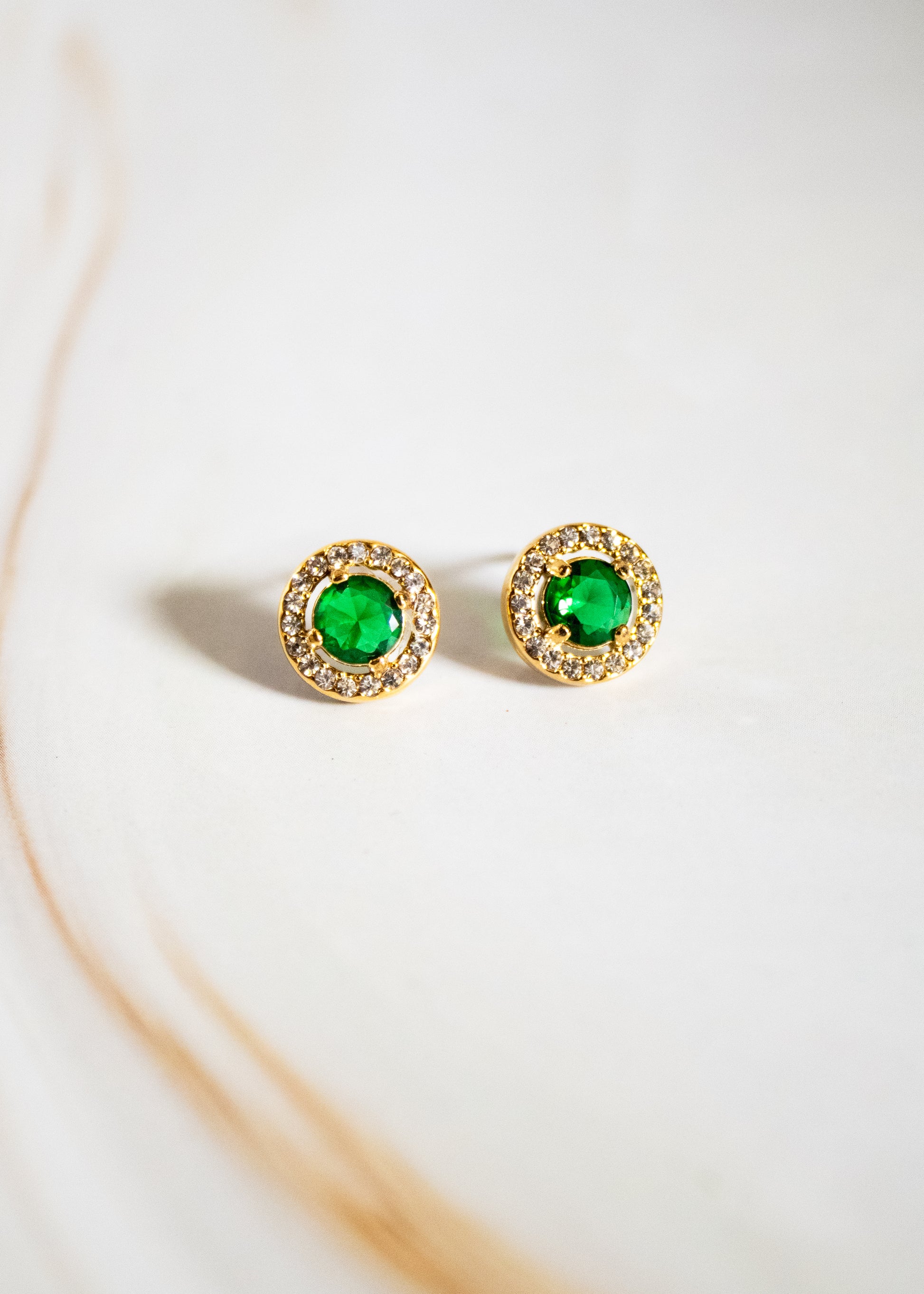 Add a pop of color and elegance to your style with these gold circle earrings, featuring sparkling accents and a striking green crystal.