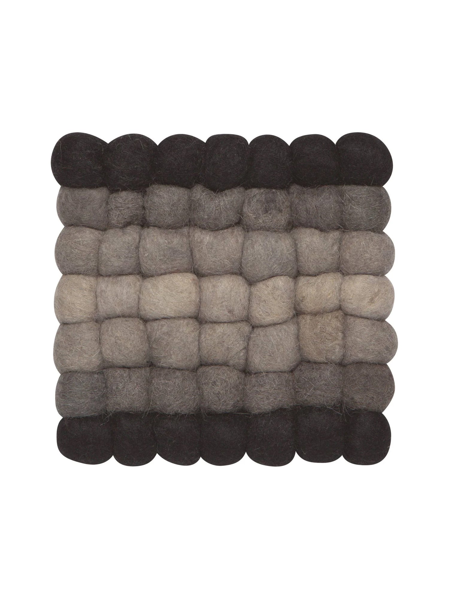 Ombre colors create a kaleidoscope pattern on these cozy woolen trivets. Each sphere is hand-felted and connected creating an unusual, textural statement for the kitchen or table.