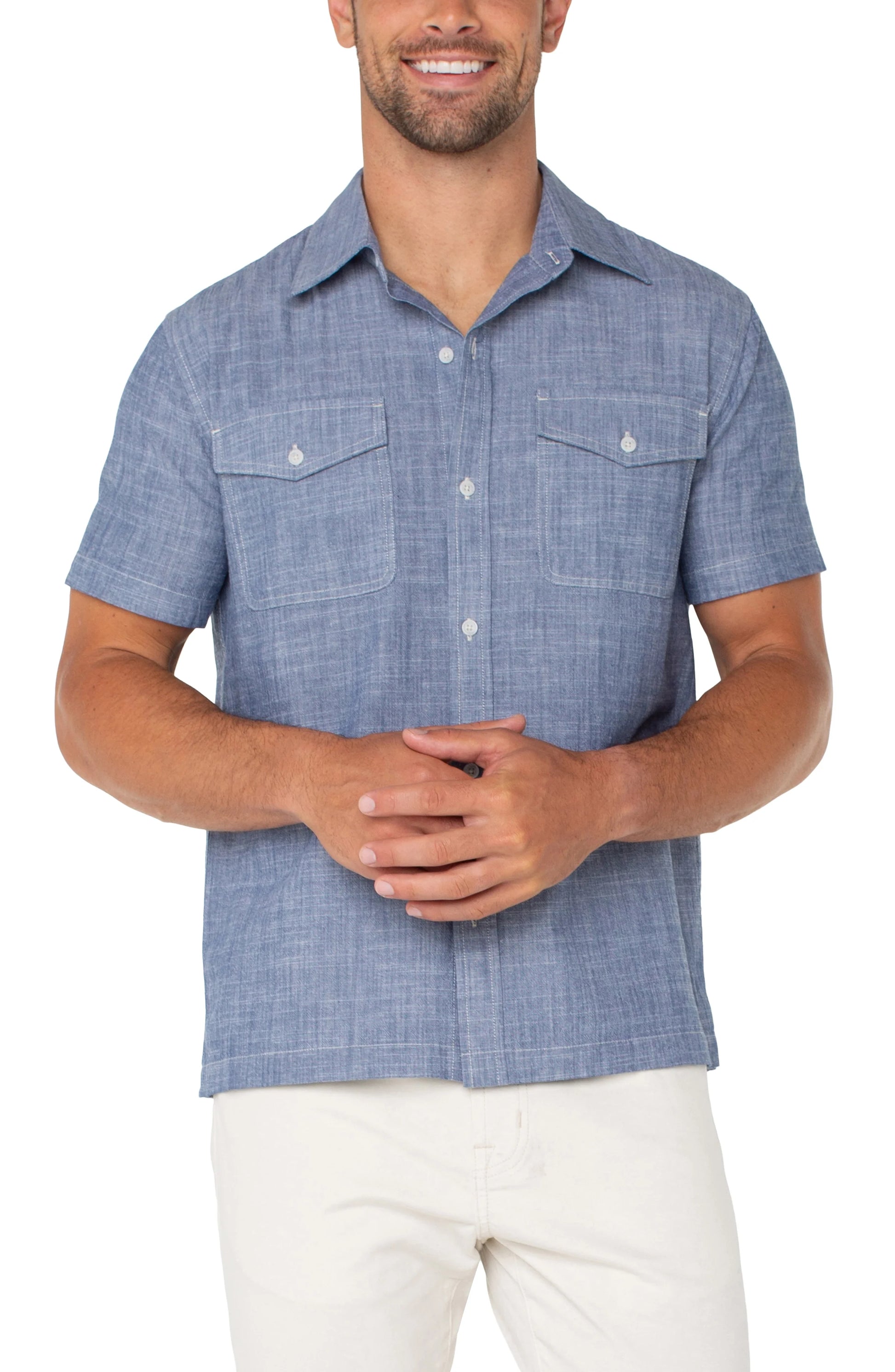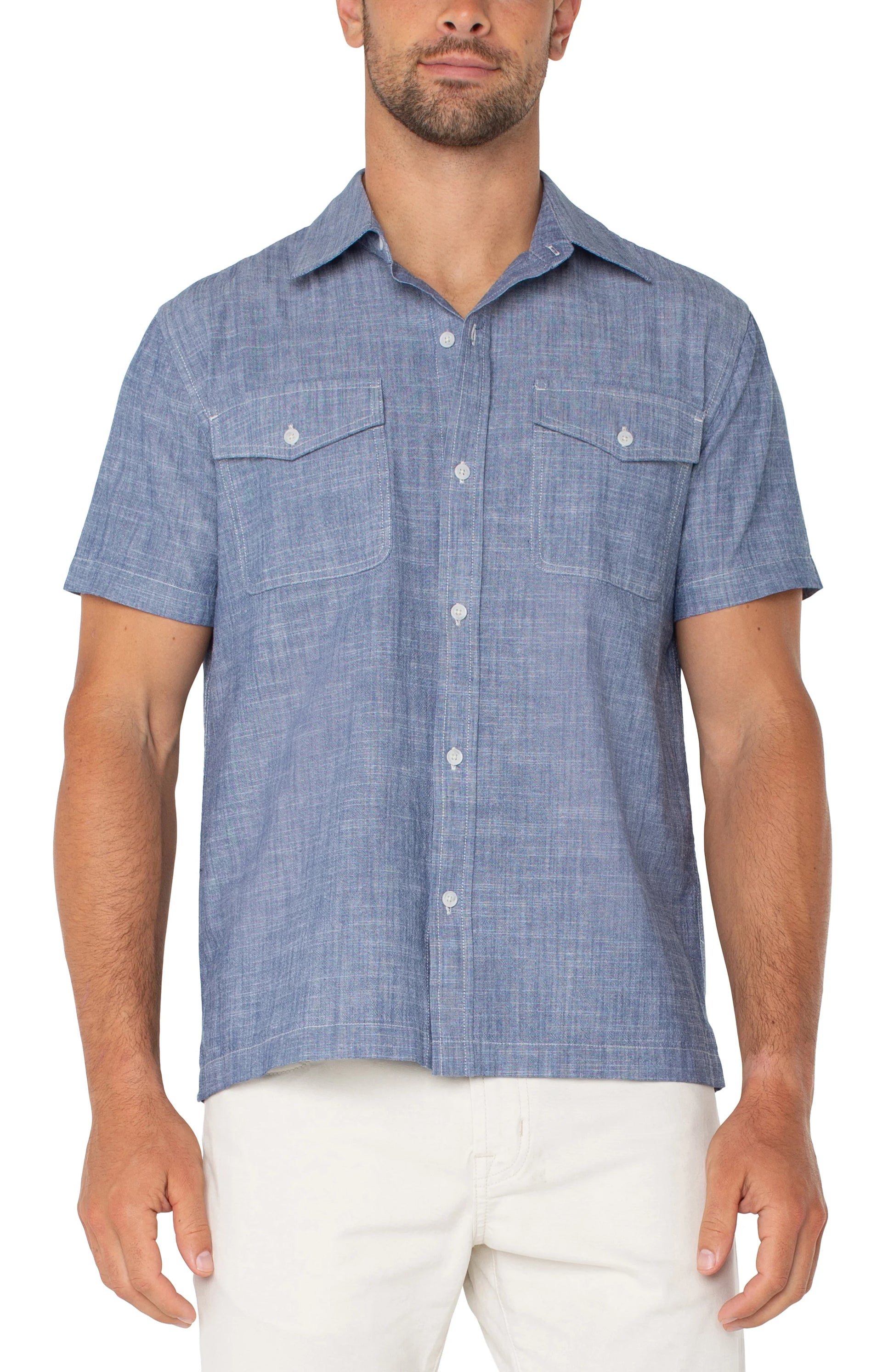 Short Sleeve Flap Pocket Shirt in Chambray | Liverpool