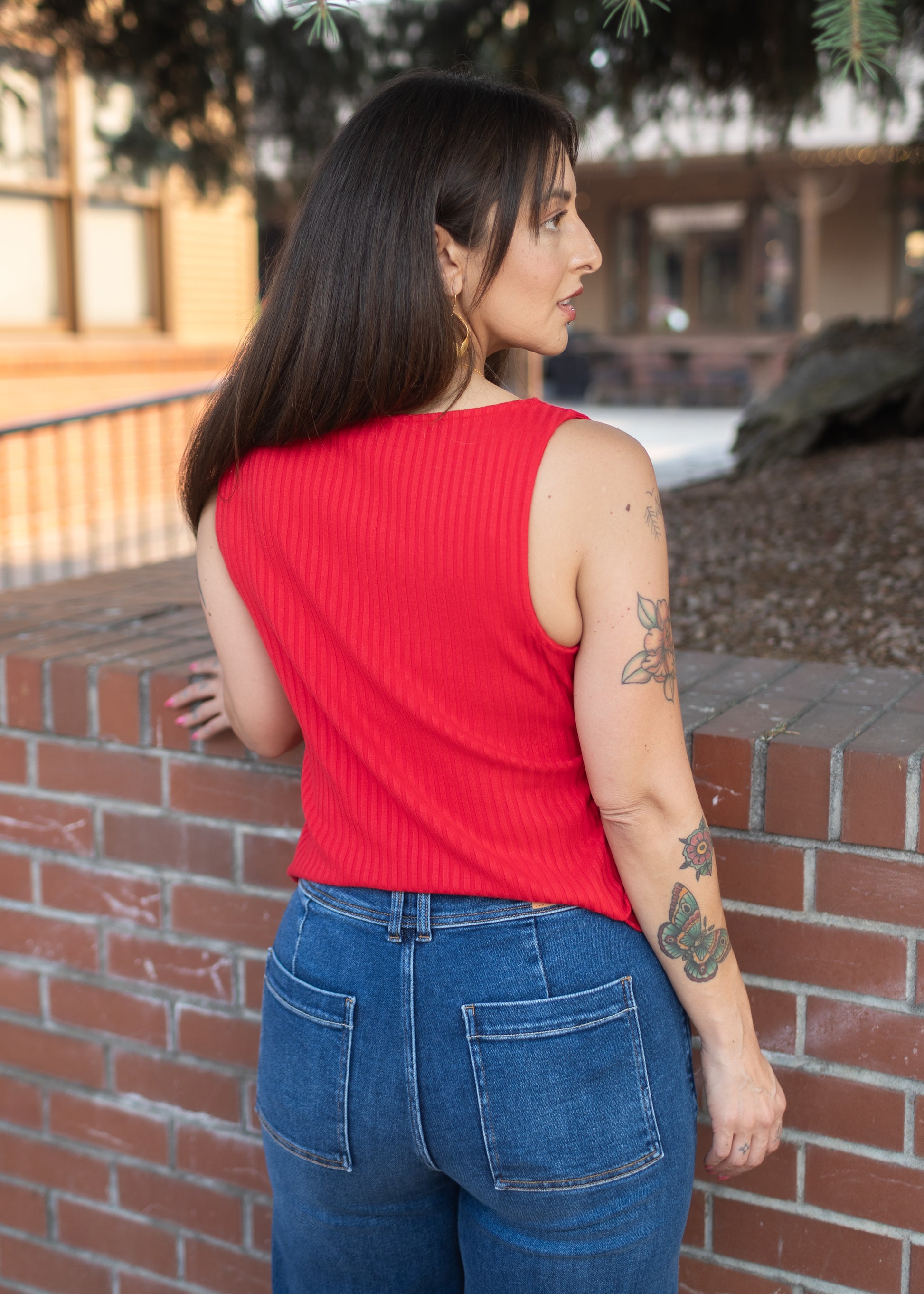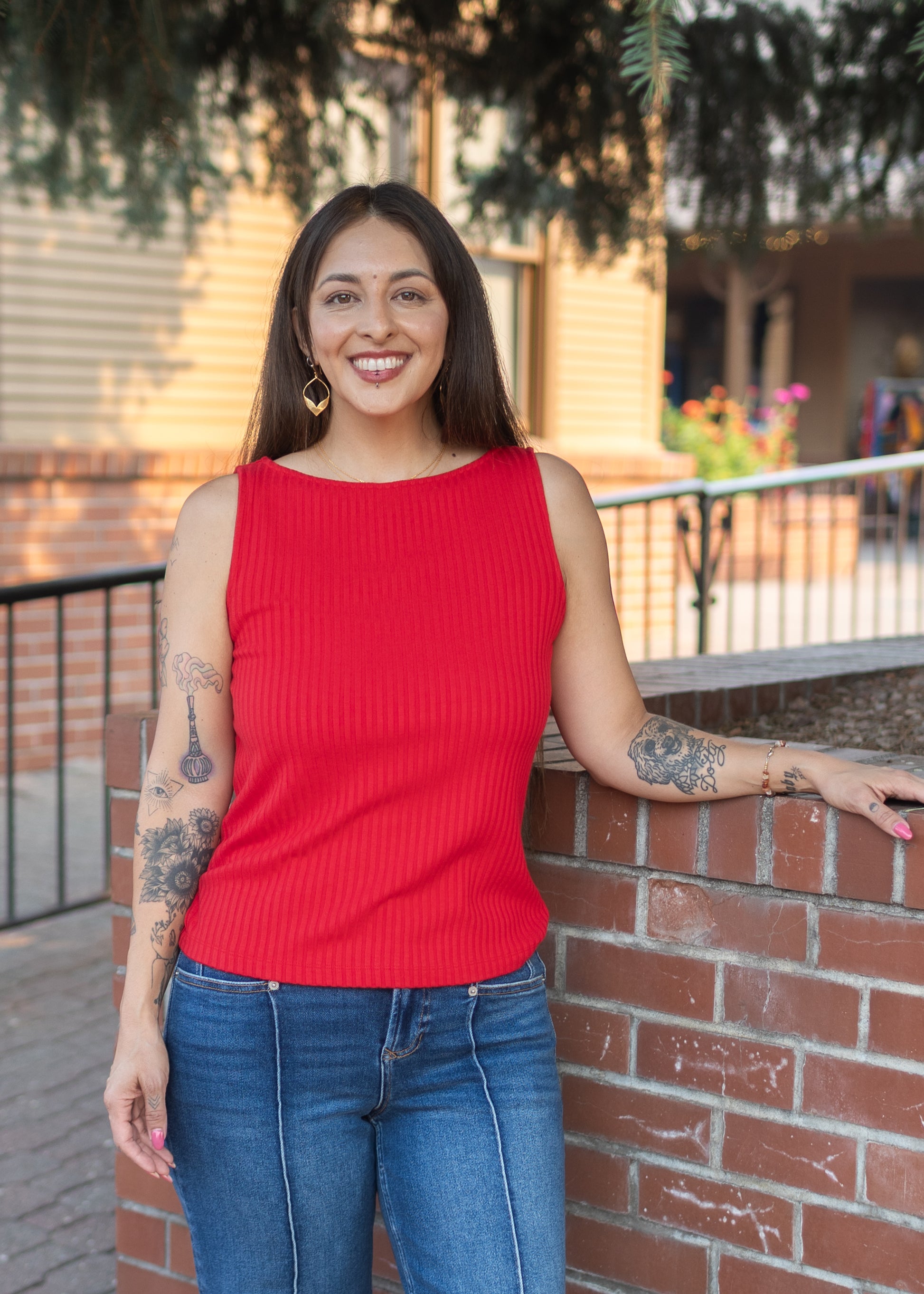 Sleeveless Boat Neck Rib Knit Top in Tango | Liverpool