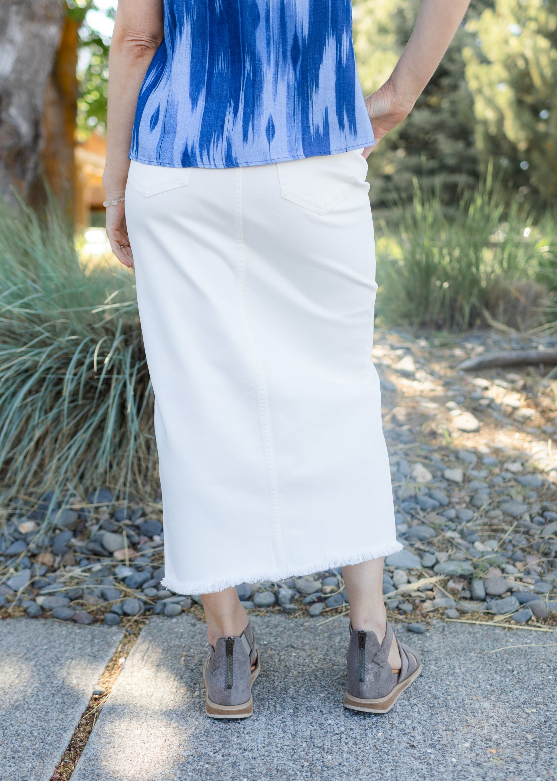 Enhance your style with this Maxi Skirt, featuring a front hemline v-split for that perfect combination of trend and functionality.