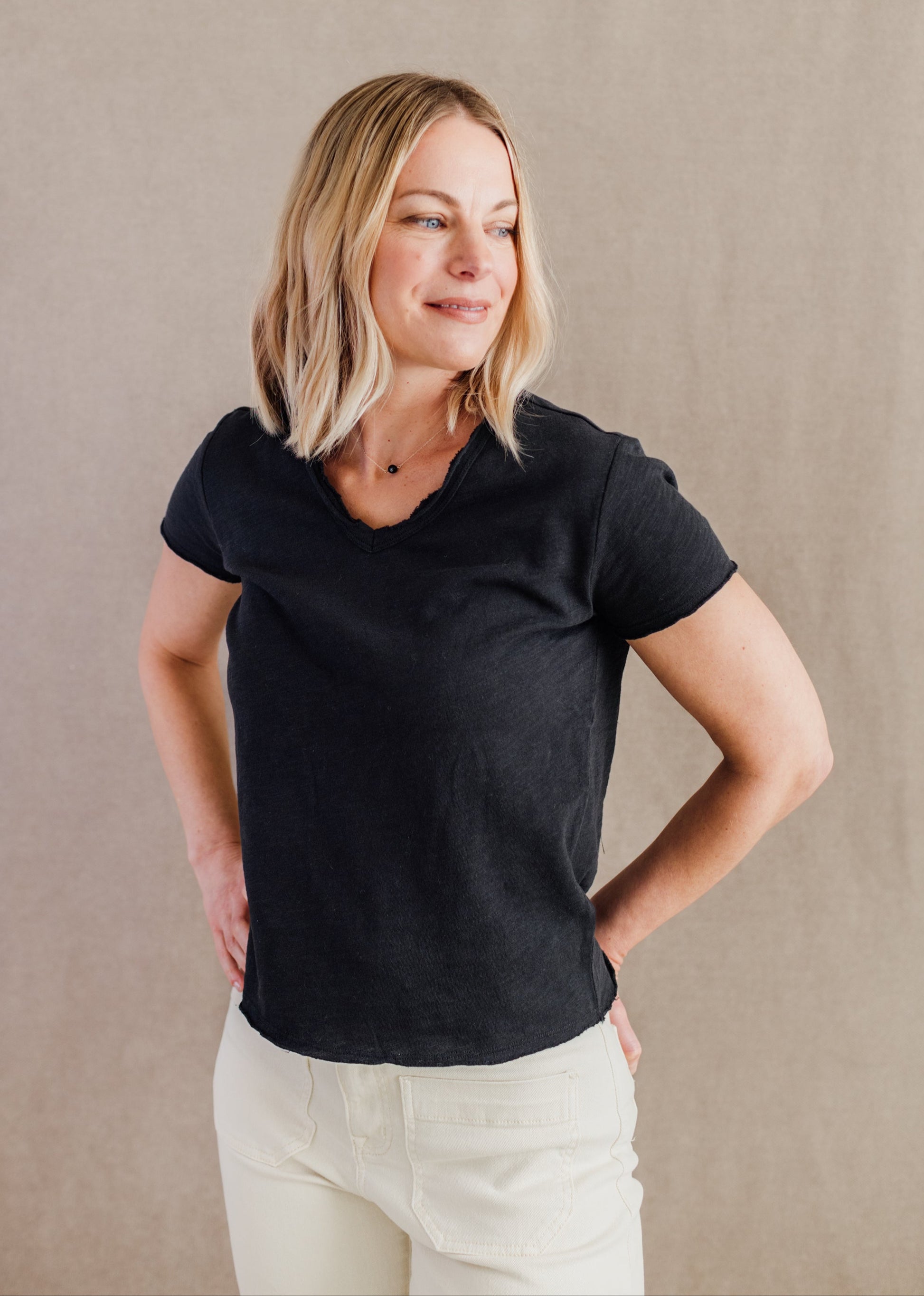 Vanya Relaxed V-Neck Tee in Black | Dear John