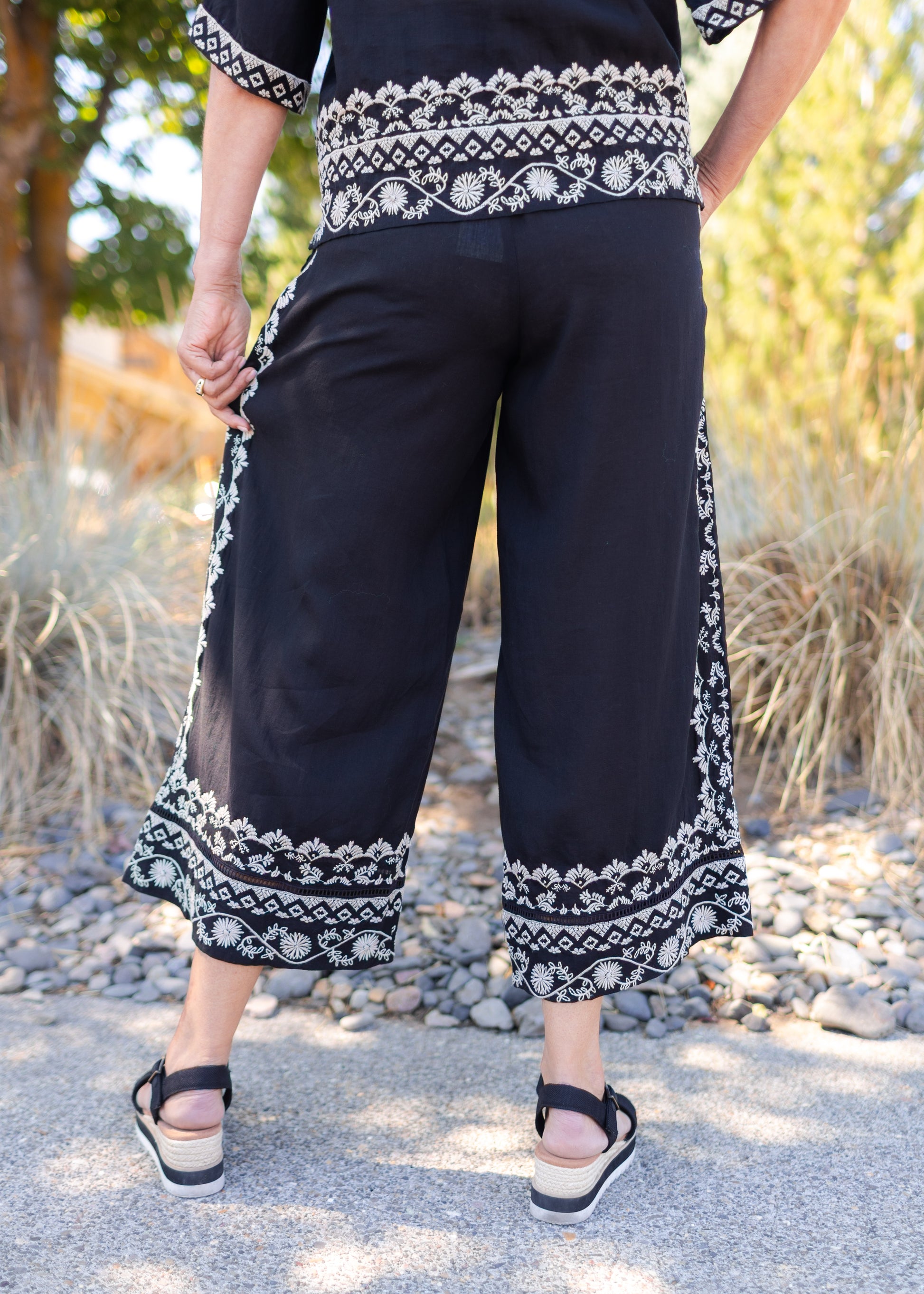 Thoughtfully crafted from a beautiful linen, the Villa Pants are designed for comfort and style. Featuring an elastic waist band and wide legs, these pants are finished with contrasting embroidered detailing.