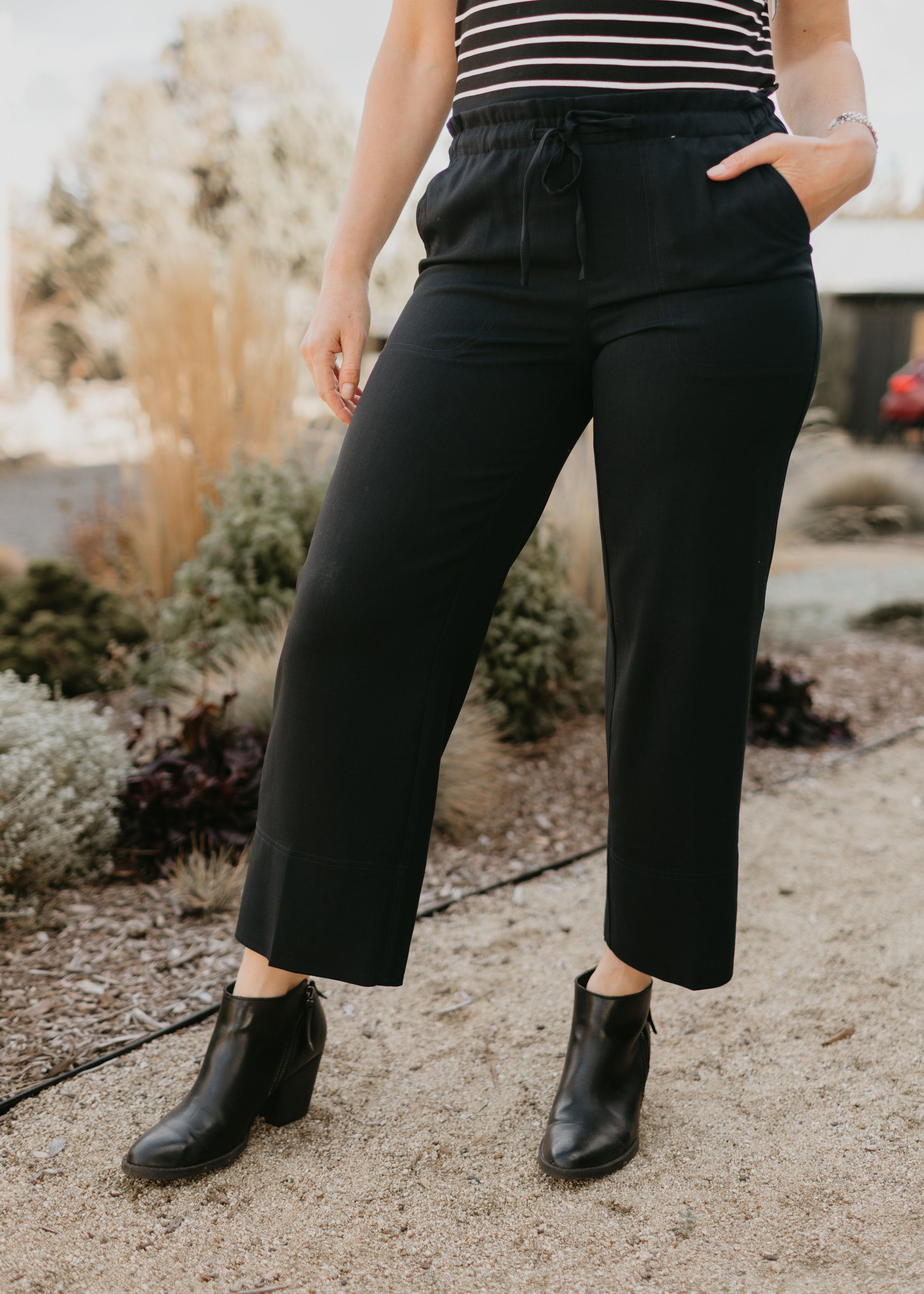 These mid-rise, wide-leg pants feature a pull-on waistband with an adjustable tie for comfort and ease. With a fluid drape and ankle-length cut, they’re effortlessly versatile!