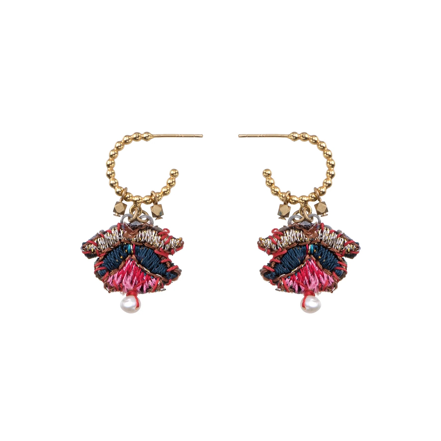 - Crafted from a mix of fabric, metals, glass, and beads